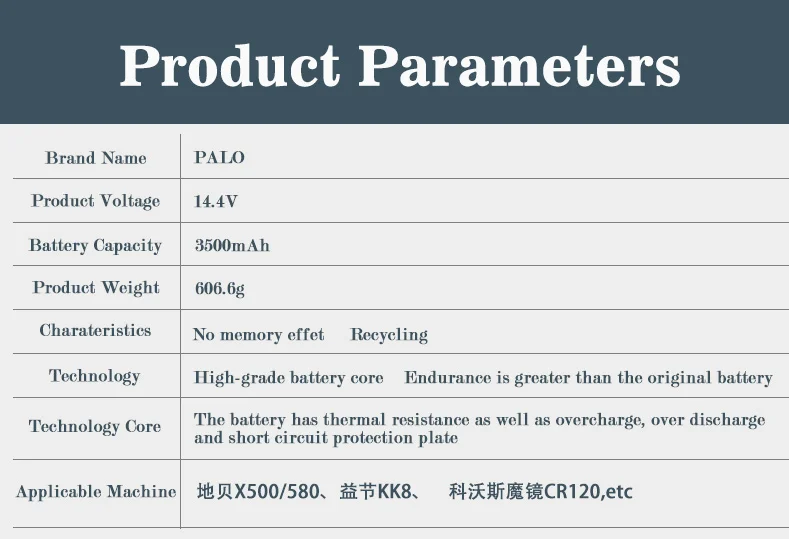 Аккумулятор PALO для робота-пылесоса Panda X500 X580Kitfort KT504 Haier T322 T321 T320 T325 Ecovacs Mirror CR120, 14,4 В, 3500 мАч