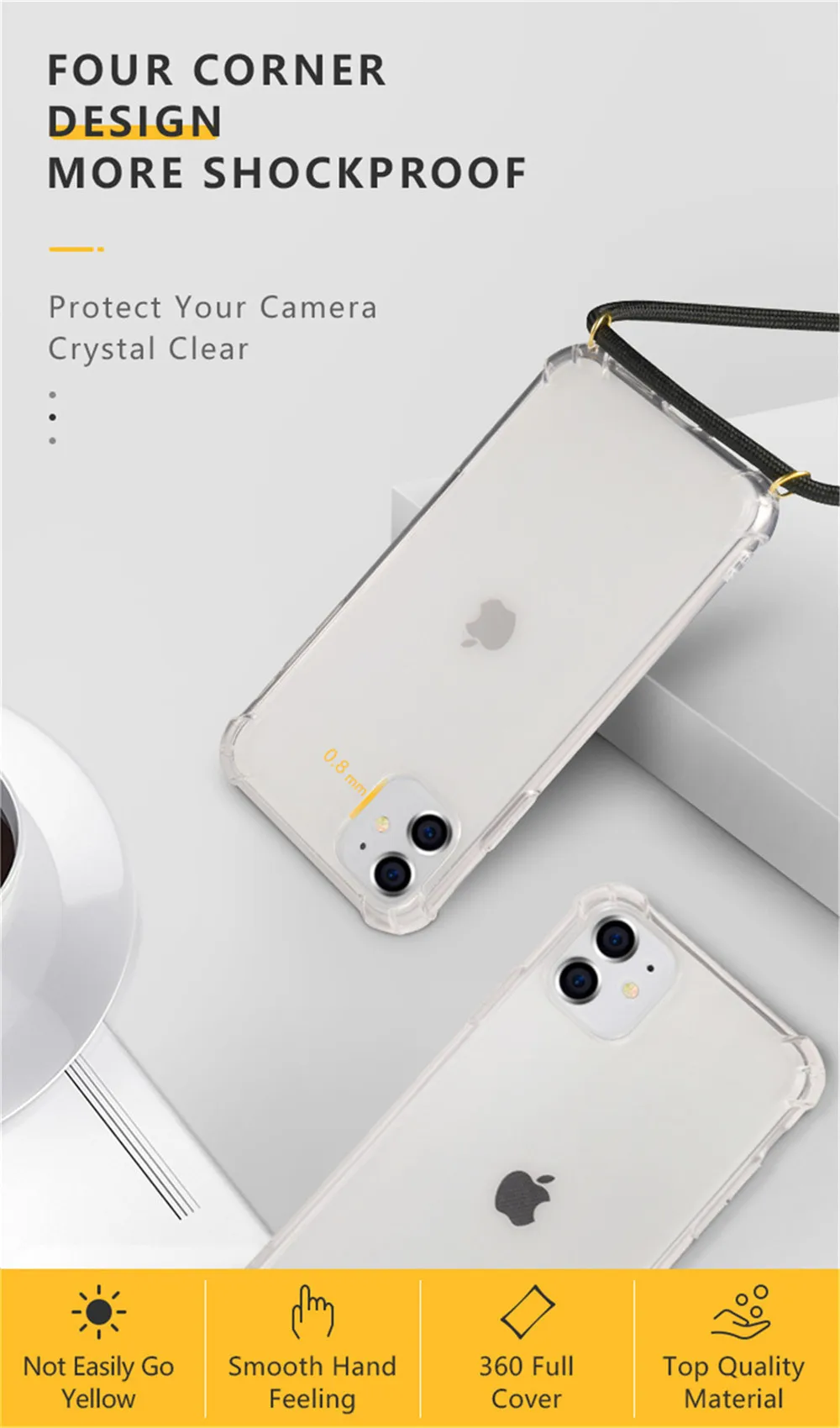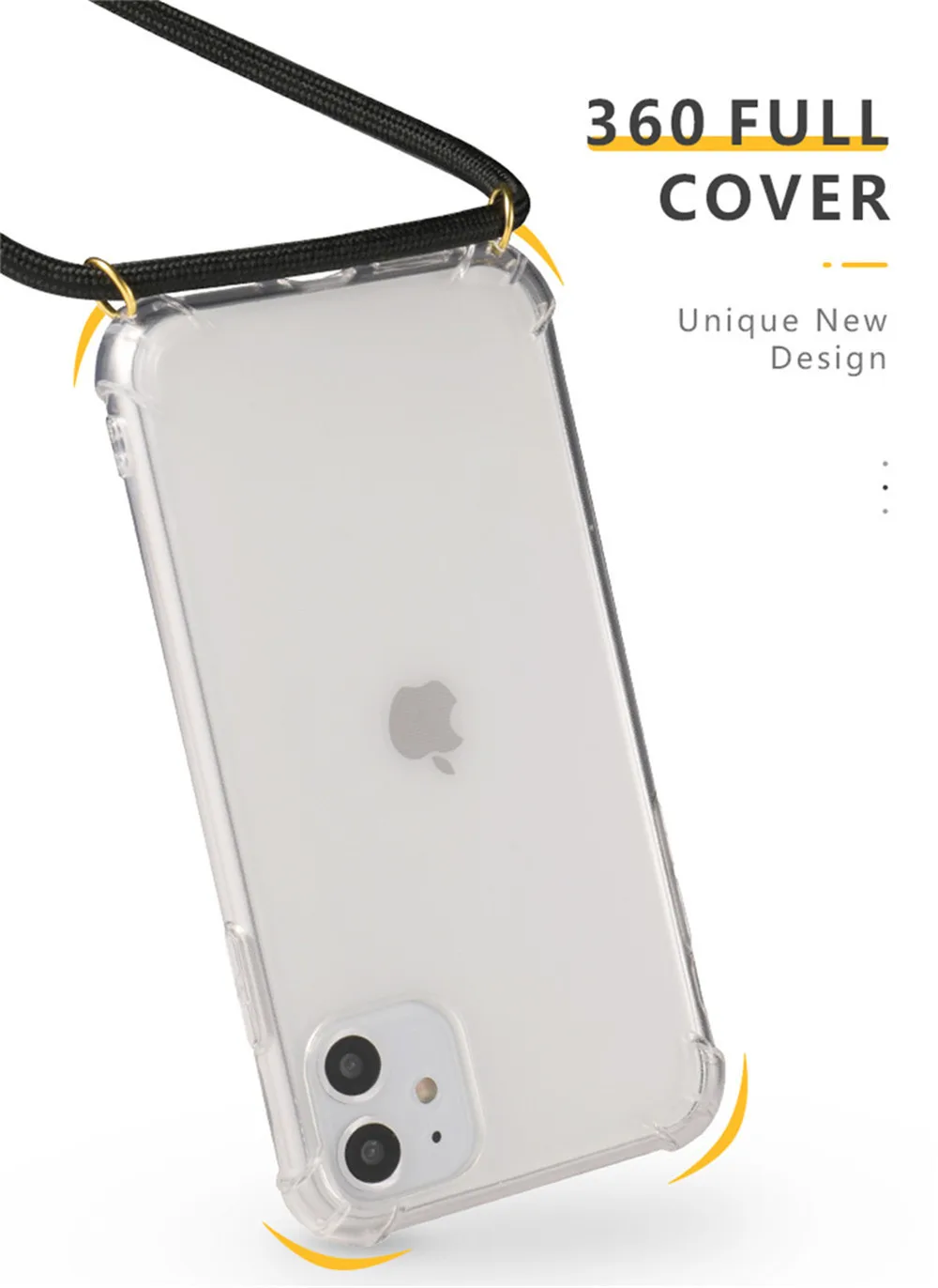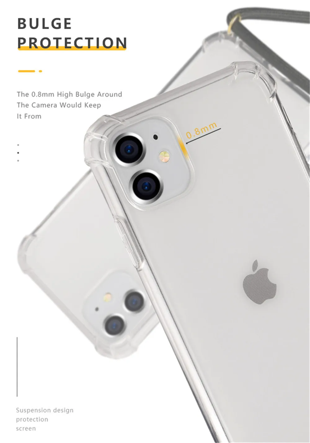Прозрачный чехол с ремешком через плечо для iPhone 12, 11 Pro Max, ...