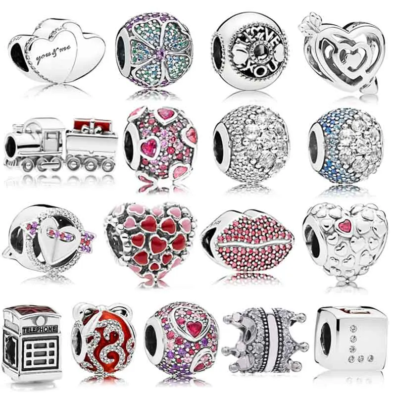 Подвеска сделай сам, красный поезд, поцелующийся Яркий орнамент, имитация любовного сердца, браслет Pandora, ювелирные изделия