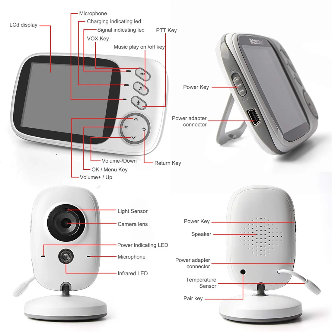 Радионяня VB603, беспроводная камера видеонаблюдения, 3,2 дюйма, Wi-Fi, цветной ЖК-дисплей, HD, монитор с ночным видением и температурой