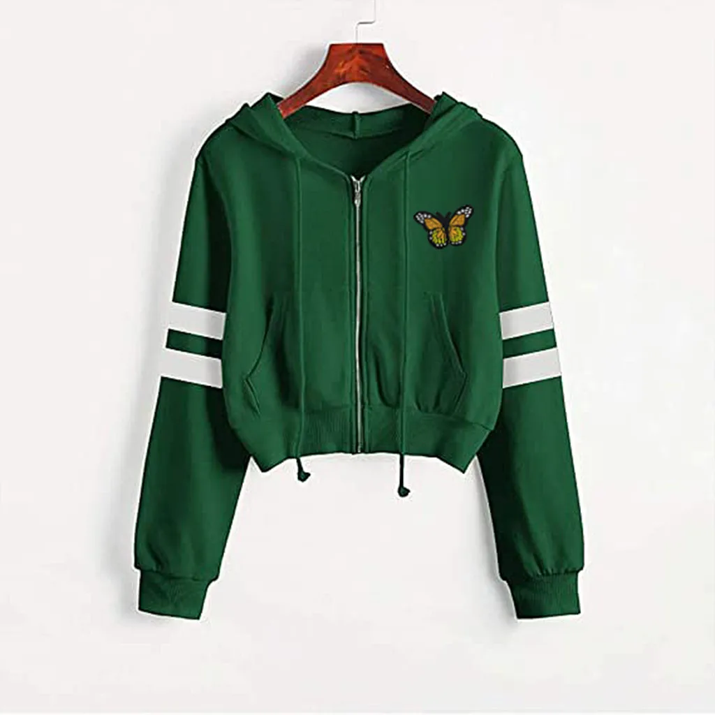 Женский однотонный короткий свитер на молнии с длинным рукавом и капюшоном