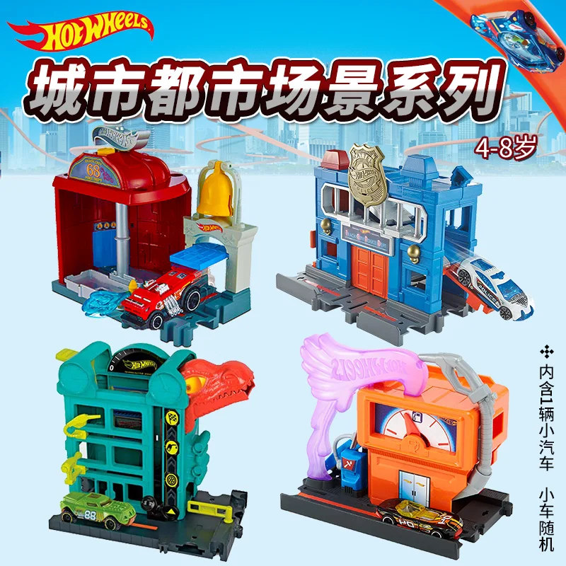 Оригинальная модель автомобиля Hot Wheels, городская тематическая серия, игрушки для детей, центр пожарной станции, спиннерт для мальчиков, игровой набор и дети