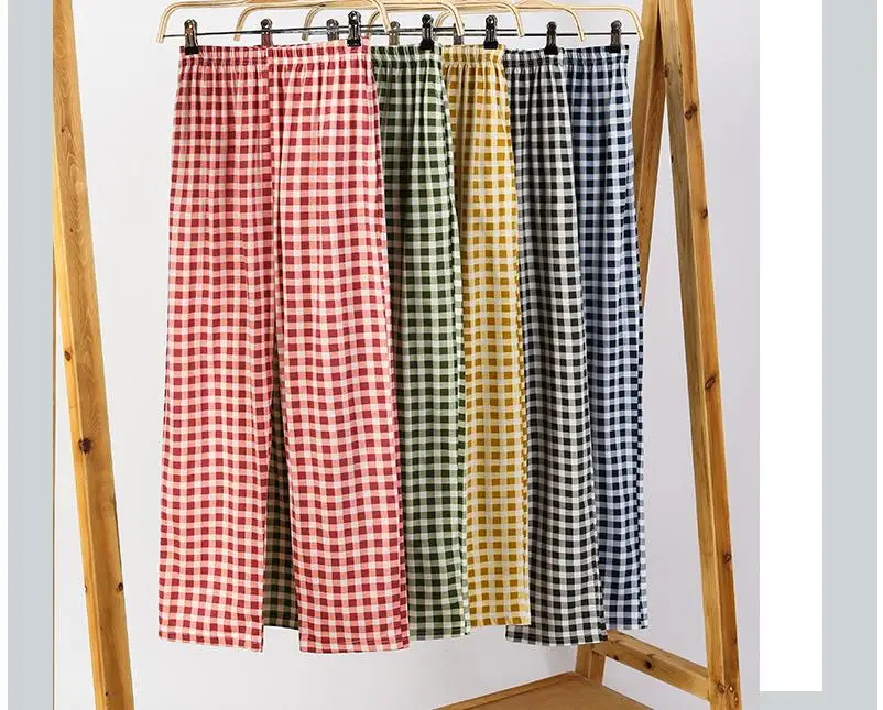 Хлопковые пижамы женские брюки весна и осень плед простой свободный большой размер домашний сервис новые свободные штаны трусы 2020