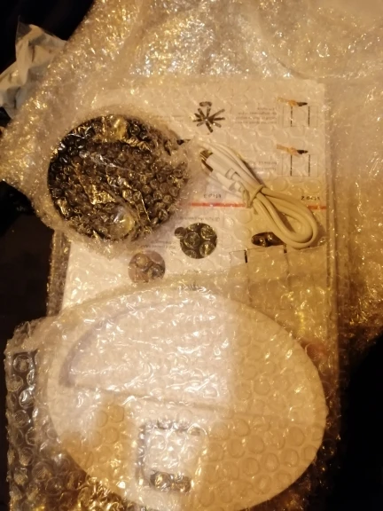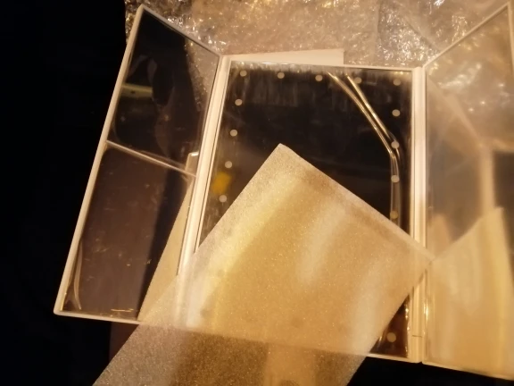 Хорошо упаковано для доставки с несколькими слоями пузырчатой бумаги работает правильно и с очень ярким белым светом. В комплект входит покрытое зеркало, которое защитит его от царапин. Основание для зеркала-usb-кабель для микро-usb и увеличительное зеркало * 15. Очень Рекомендуемая покупка.