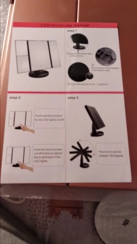 Соответствует описанию. Необходимо снять прозрачную пленку, чтобы иметь реальное качество зеркала и нажмите один раз, чтобы включить или выключить лампы и нажмите в течение длительного времени, чтобы настроить интенсивность свет. Спасибо вам