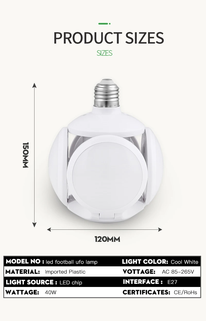 Светодиодный ная лампа E27, складной светильник с вращением на 220 градусов, 306045 Вт, 360 в