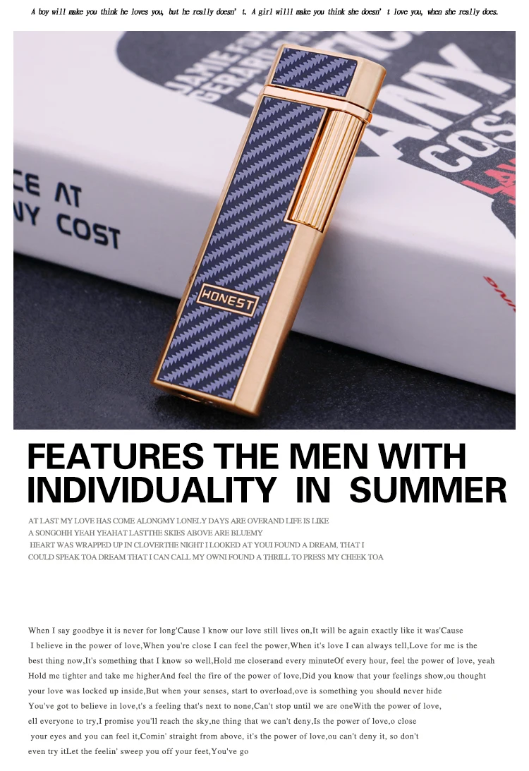 Новинка газовая надувная Зажигалка боковая кремневая Зажигалка открытый огонь личность ветрозащитная ультратонкая металлическая сигарета
