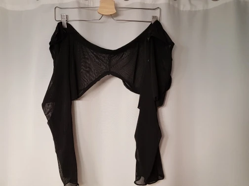 I am a USA customer. I ordered June 7 2021 . Received July 30 2021. I am 5 foot '7 inches. I am 132 pds, 34C bust. I am proportionate. Shipping time was as expected. I ordered the medium but could probably wear the large. In Medium it it snug on the arms but wearable. I wanted to have the sheer arms be snug, but I think they would be snug in the large too. Getting into the garment was a slow process becase of the type of material. It will pull/snag with ragged nails, sharp nails or rings. It does go on tight . This is sheer. I will use this under a black dress I love but would like a sleeve on. I am busty so I will wear the front panels tucked to the side of the bust. I tried that and it was fine. Add to dress up or dress down. For those of you who have sleeveless garments that you love but wished there was a sleeve, just add this ! Thank you