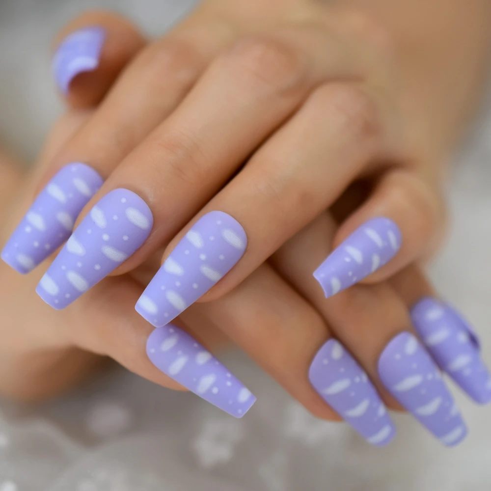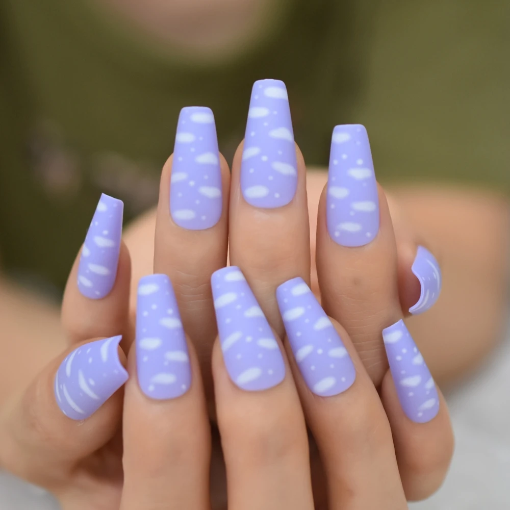 Накладные ногти Sky White Cloud Baby Purple, накладные ногти, балерина, гроб, популярный, матовый, матовый, искусственный инструмент для наращивания пальцев