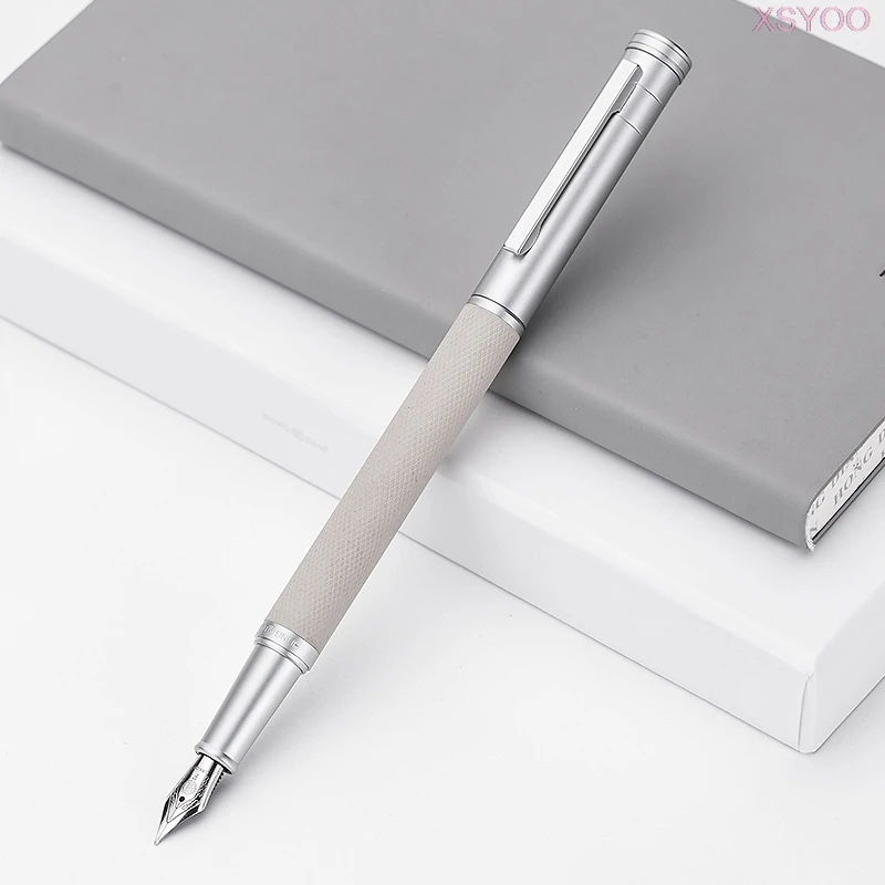 Перьевая ручка Hongdian, черная, серебристая, металлическая, с изогнутой текстурой перьев, отличное письмо, титановая, стандартная ручка