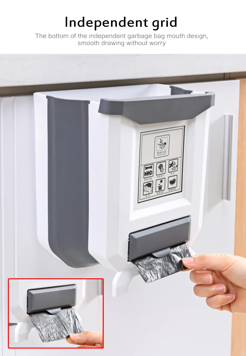 Легко установить, просто подключите компактное складное ведро к любому ящику шкафа или двери. Когда вы готовите свежую еду, нарезаете и режете, вам не нужно часто открывать и закрывать дверцу шкафа мокрыми руками, а не мусорным баком под раковиной.