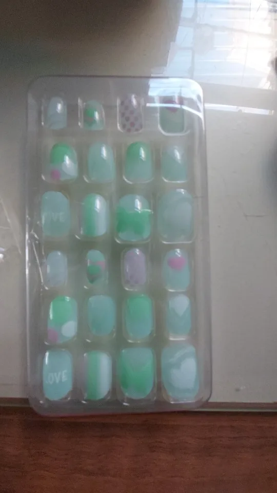 Они были для моей дочери, и им понравилось. Как на фотографии. Они поставляются с клеем уже в ложном ноготь, все, что вам нужно сделать, это нажать его, так что он застревает плотно, и это все. Я куплю их снова!