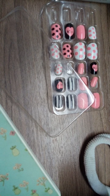 Очень мило, как на картинке. Они несут наклейку внутри и наклеиваются, но они не могут удерживать, я рекомендую использовать клей для ногтей. Идеально подходит для маленьких девочек.