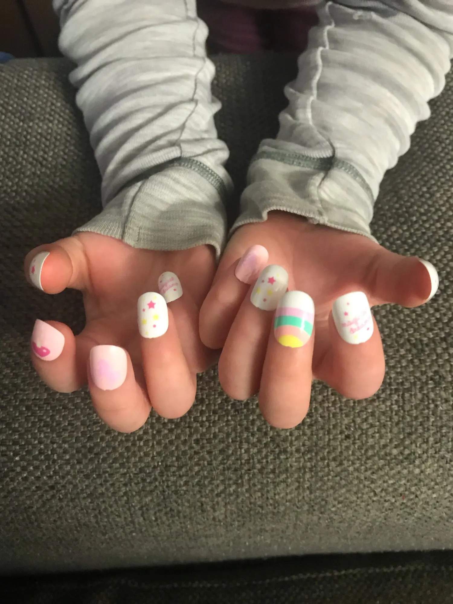 Ногти очень красивые, аккуратные, хорошо клеятся. Ребенок доволен.