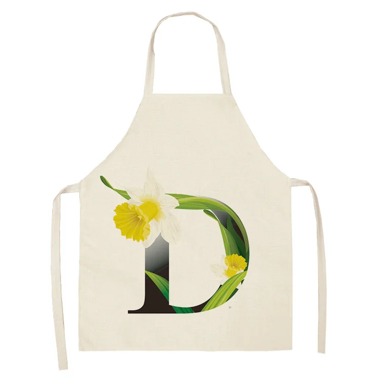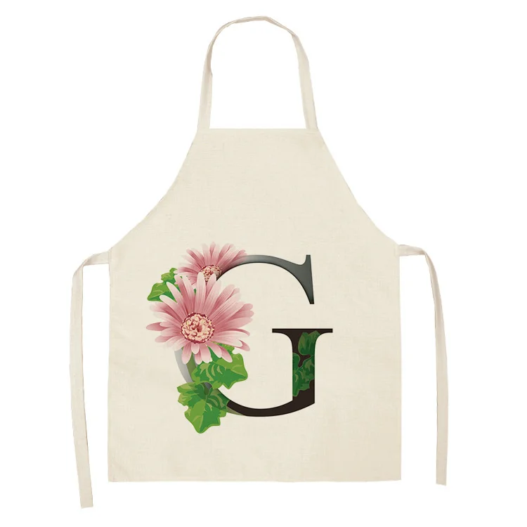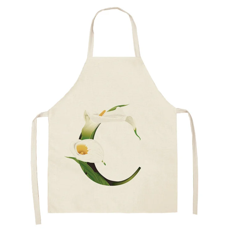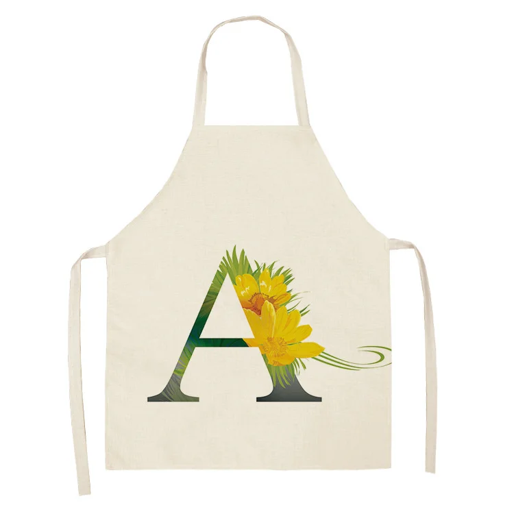 Женское хлопковое белье без рукавов, с цветочными буквами, Кухонный Фартук с узором, инструменты для уборки дома, 53 х65 см, WQ0044