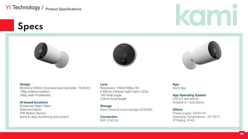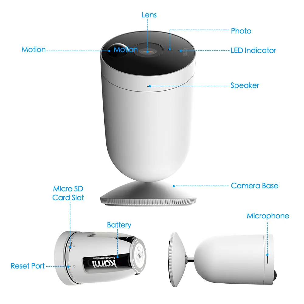 1. 100% провод бесплатноПоместите его куда угодно. Нет шнуров или кабеля.2. Длительный срок службы батареиПерезаряжаемый длительный срок службы батареи для бесперебойного удобства3. Два варианта храненияДва варианта хранения Kami Cloud & sd-карт позволяют разместить его в любом месте-Wi-Fi или без WIFI4. Улучшенное Обнаружение движения