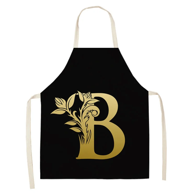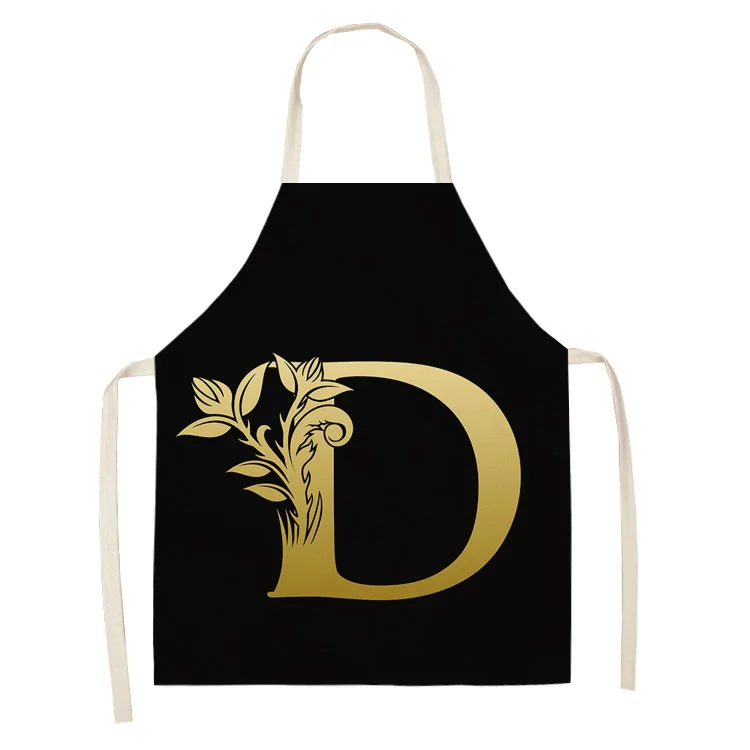 Золотые буквы алфавита Кухонный Фартук с узором для женщин, хлопковое Белье Без Рукавов фартуки для приготовления еды, инструменты для уборки дома 53*65 см WQ0051