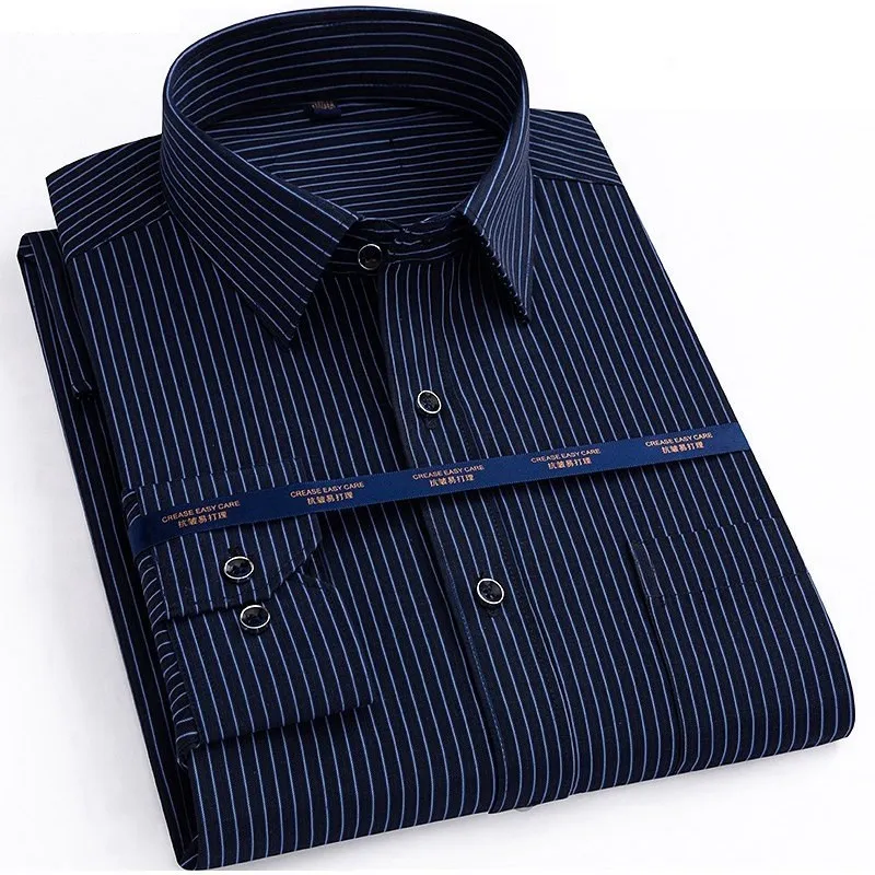 Рубашка мужская офисная в стиле оверсайз с длинными рукавами, хлопковая формальная рубашка в полоску, цвет синийчерный, размера плюс, 8XL10XL12XL, осень