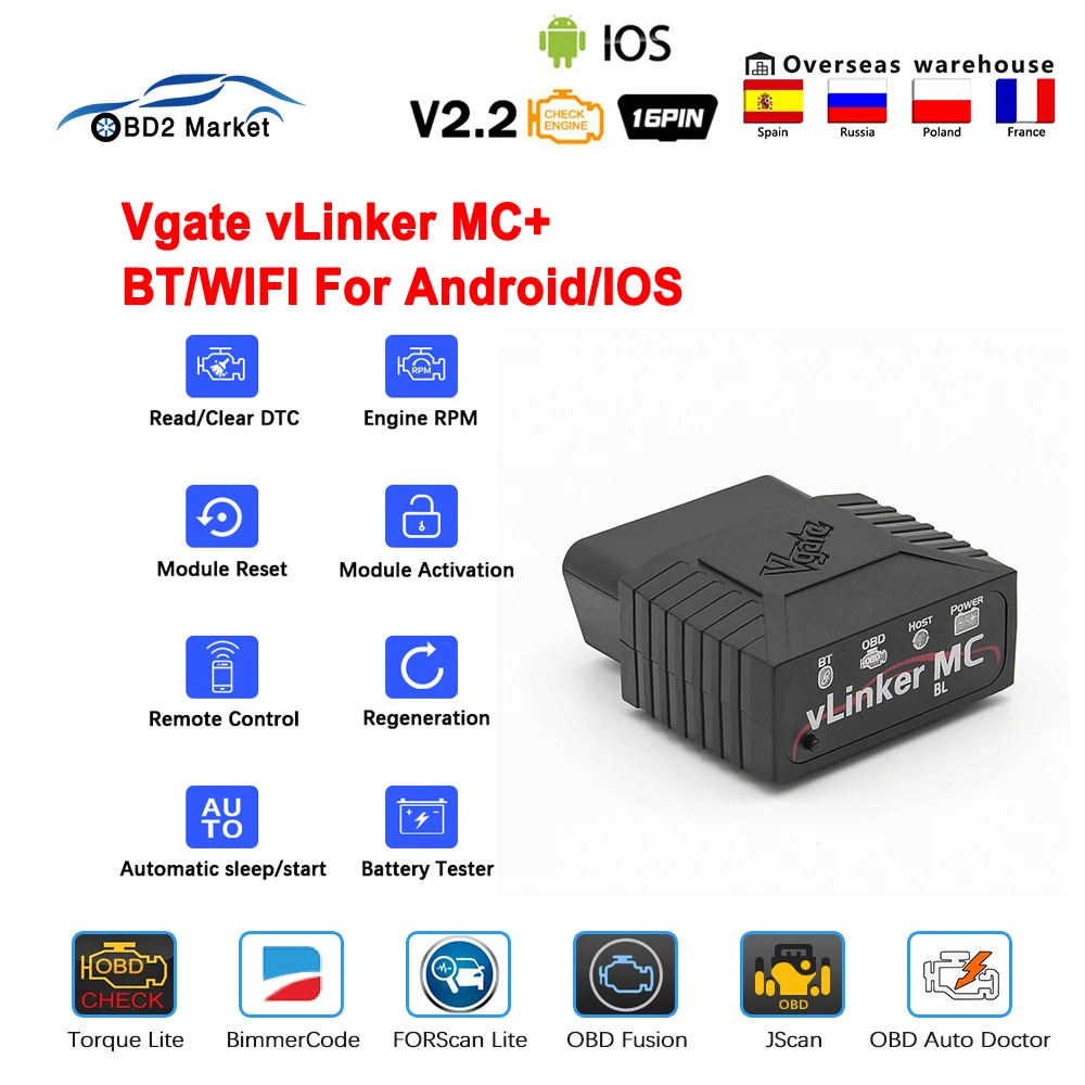 Автомобильный диагностический сканер Vgate vLinker MC + ELM327 WIFI Forscan, Bluetooth-совместим с 4,0 ELM 327 для AndroidIOS OBD OBD2