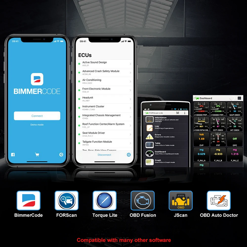 Идеальная совместимость: для Bimmer кода/для крутящего момента/для Forscan/для JScan/Для Auto Doctor/для OBD Fusion и т. д. 99% программного обеспечения приложения