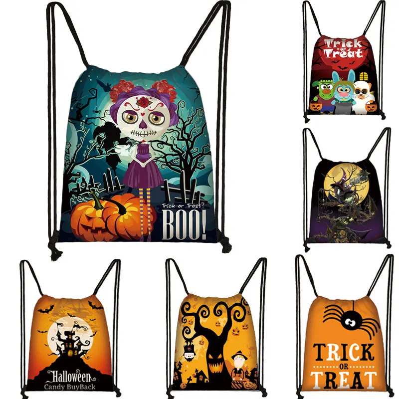 Хэллоуин Тыква трюк или лечения сумка на шнурке для мальчиков и девочек конфеты мешки мини рюкзак дух паук детская книга сумка женские сумки для покупок