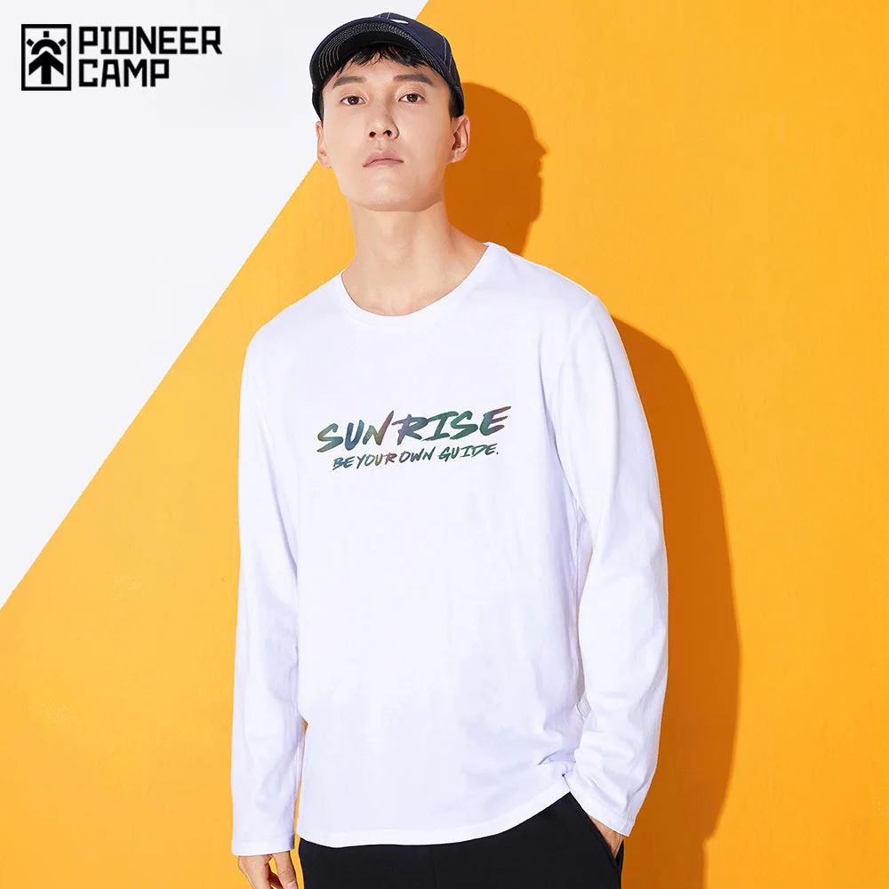 Футболка Pioneer Camp мужская с длинным рукавом, повседневная тенниска из 100% хлопка, свободная уличная одежда, черная, белая, на осень