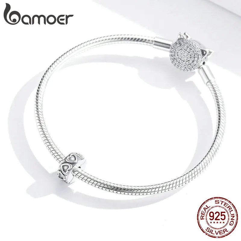Бусины-шармы bamoer для браслета и браслета, серебро 925 пробы, 3 мм