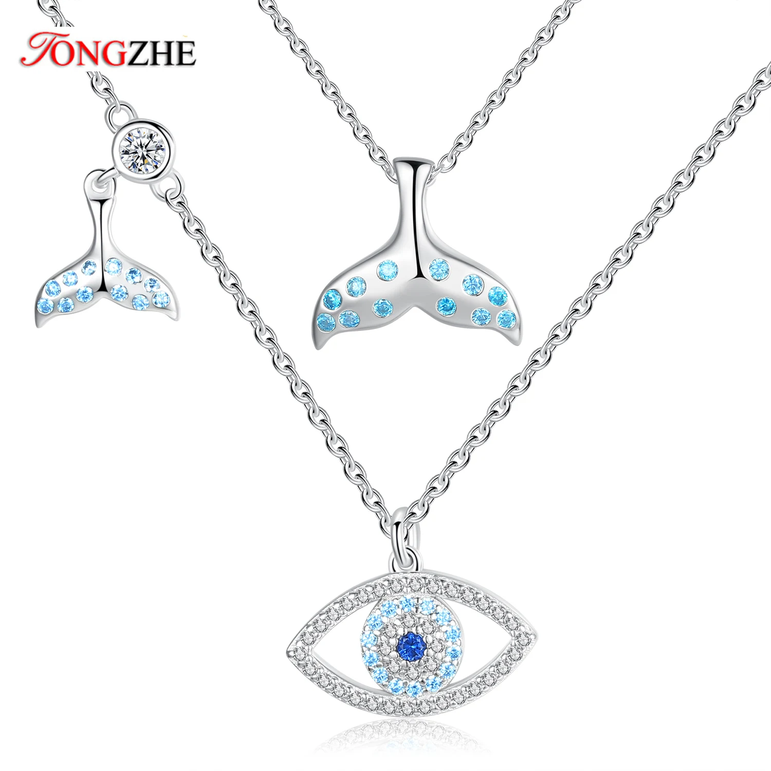 Женское колье TONGZHE, колье из стерлингового серебра 925 пробы с голубым злом и рыбьим хвостом, турецкое ювелирное изделие