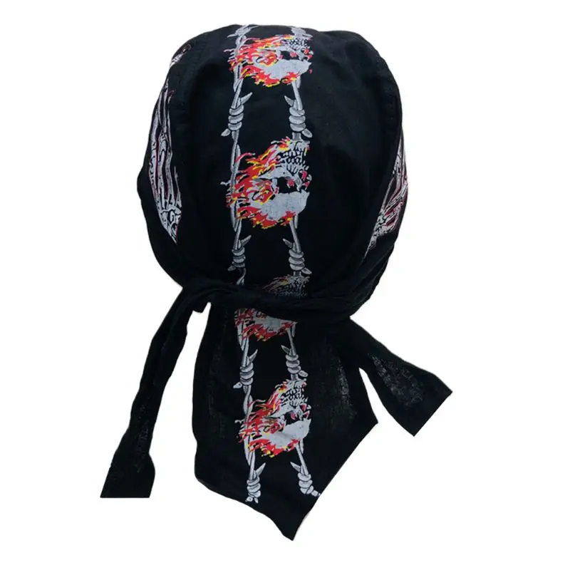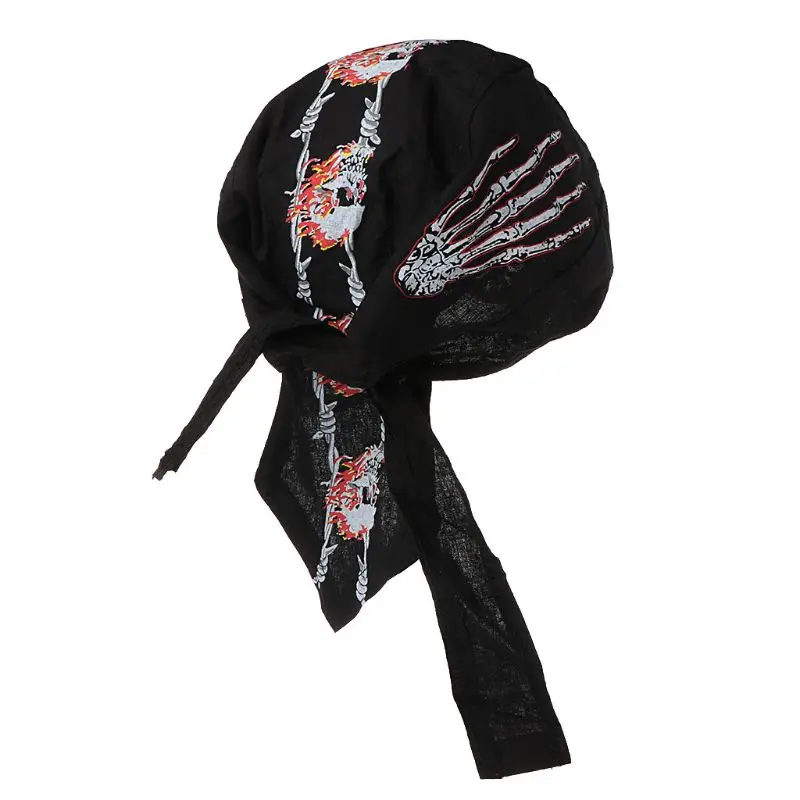 Бандана унисекс Регулируемая для занятий спортом на открытом воздухе, головной платок в стиле хип-хоп, с рисунком в виде черепа и пламени, шлем с подкладкой, пиратский головной платок