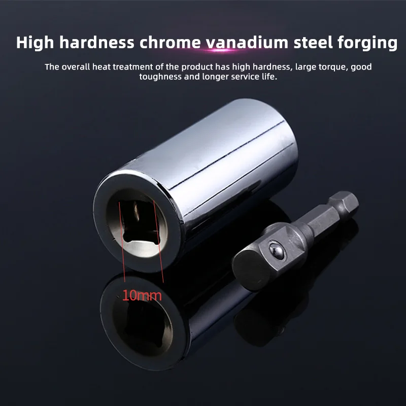 Универсальный адаптер для розетки может самостоятельно настроить, чтобы соответствовать тысячам крепежных элементов. Адаптер питания преобразует электрическую дрель в источник питания. Гаечный ключ с накатанной нескользящей ручкой прост в эксплуатации с небольшим усилием. Полированная хромированная отделка обеспечивает высокую прочность и долговечность. Подходит для стандартных 1/4-3/4 дюймовых и метрических 7-19 мм гаек и болтов. Может использоваться для разборки различных форм гаек, шурупов, крючков, винтов, болтов и т. д. подходит для автомобильной промышленности, обрабатывающей промышленности и других отраслей промышленности.
