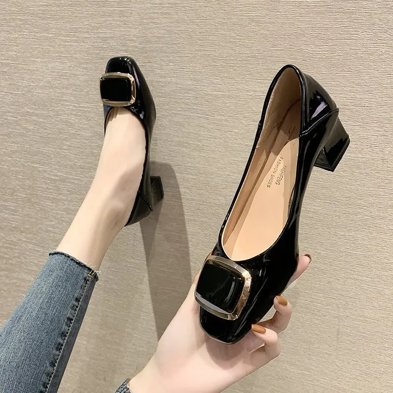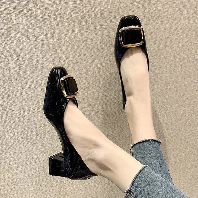 2021 женские лоферы на низком каблуке; Модельные туфли с квадратным...