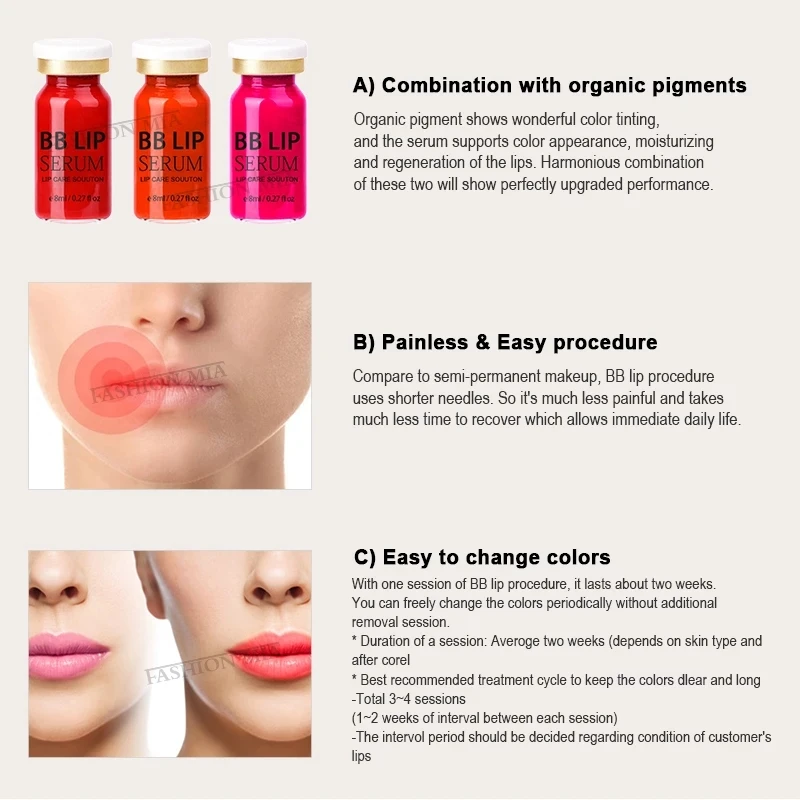 1. Отшелушивание перед началом процедуры может повысить результат процедуры. Перед началом процедуры удалите омертвевшую кожу.2. После ухода также очень важно получить лучший результат. Увлажните губы после проведения процедуры.3. Продолжительность и цвет могут отличаться от каждого типа кожи.4. Цвет может исчезнуть быстрее, чем ожидалось, если он первый раз. В этом чехол, наблюдайте за состоянием губ в течение 1 -2 недель и совершите дополнительную процедуру.5. Не позволяйте пигменту и сыворотке касаться кожи, кроме губ. Очень трудно стереть из-за сильной силы окрашивания.Для предотвращения этого нанесите очищающий гель вокруг губ перед началом процедуры.6. Продолжительность цвета может зависеть от личных привычек жизни и диеты.
