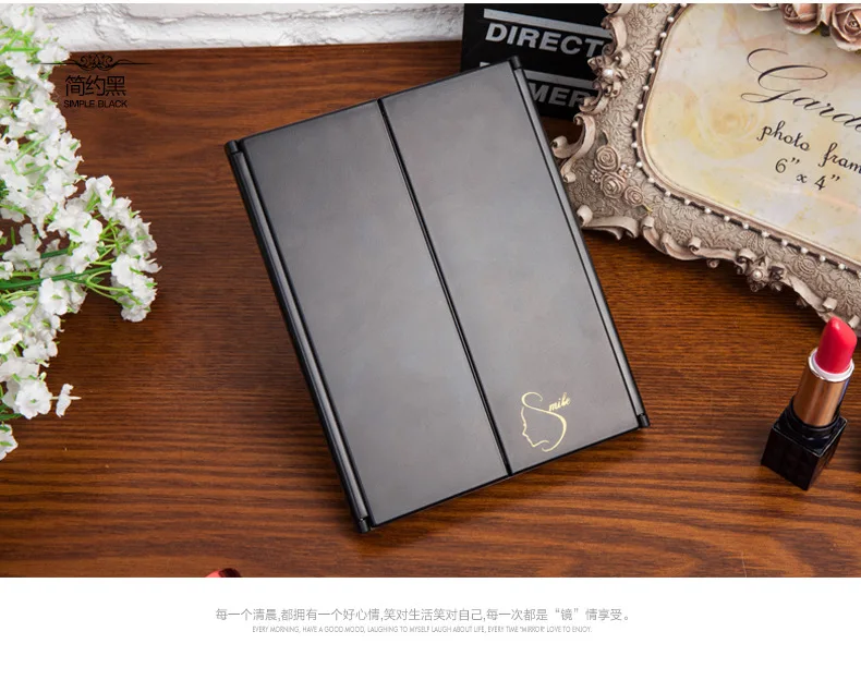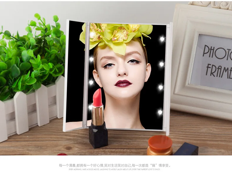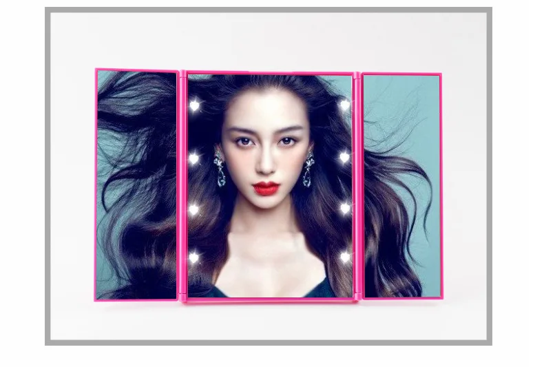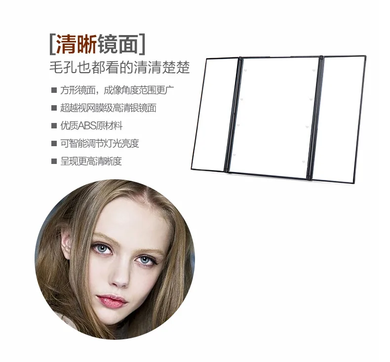 Горячее предложение, трехстворчатое косметическое зеркало со светодиодной подсветкой, портативное компактное зеркало для путешествий, складное косметическое зеркало t6