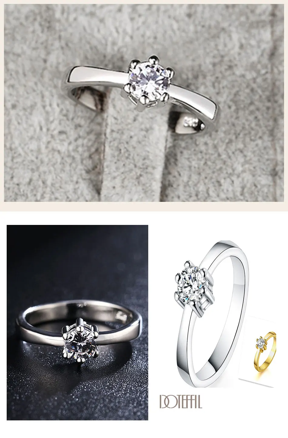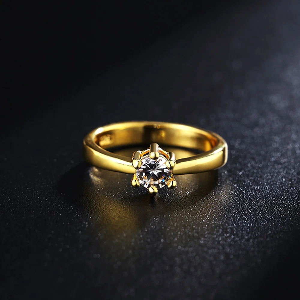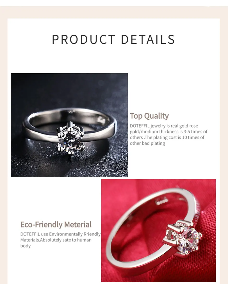 DOTEFFIL 925 Стерлинговое серебро/золото AAA циркон шесть когтей классическое кольцо для женщин модное свадебное украшение подарок