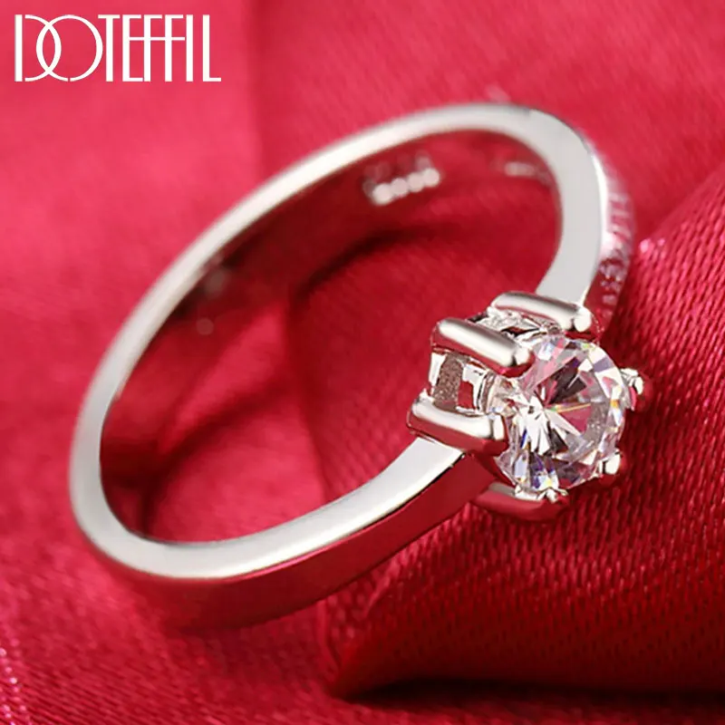 DOTEFFIL классическое кольцо из стерлингового серебра 925 пробы с фианитом класса ААА, модное свадебное украшение для вечеринки