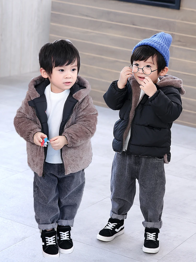 Куртка флисовая двухсторонняя, с капюшоном и вельветовой подкладкой, для мальчиков и девочек, 2021
