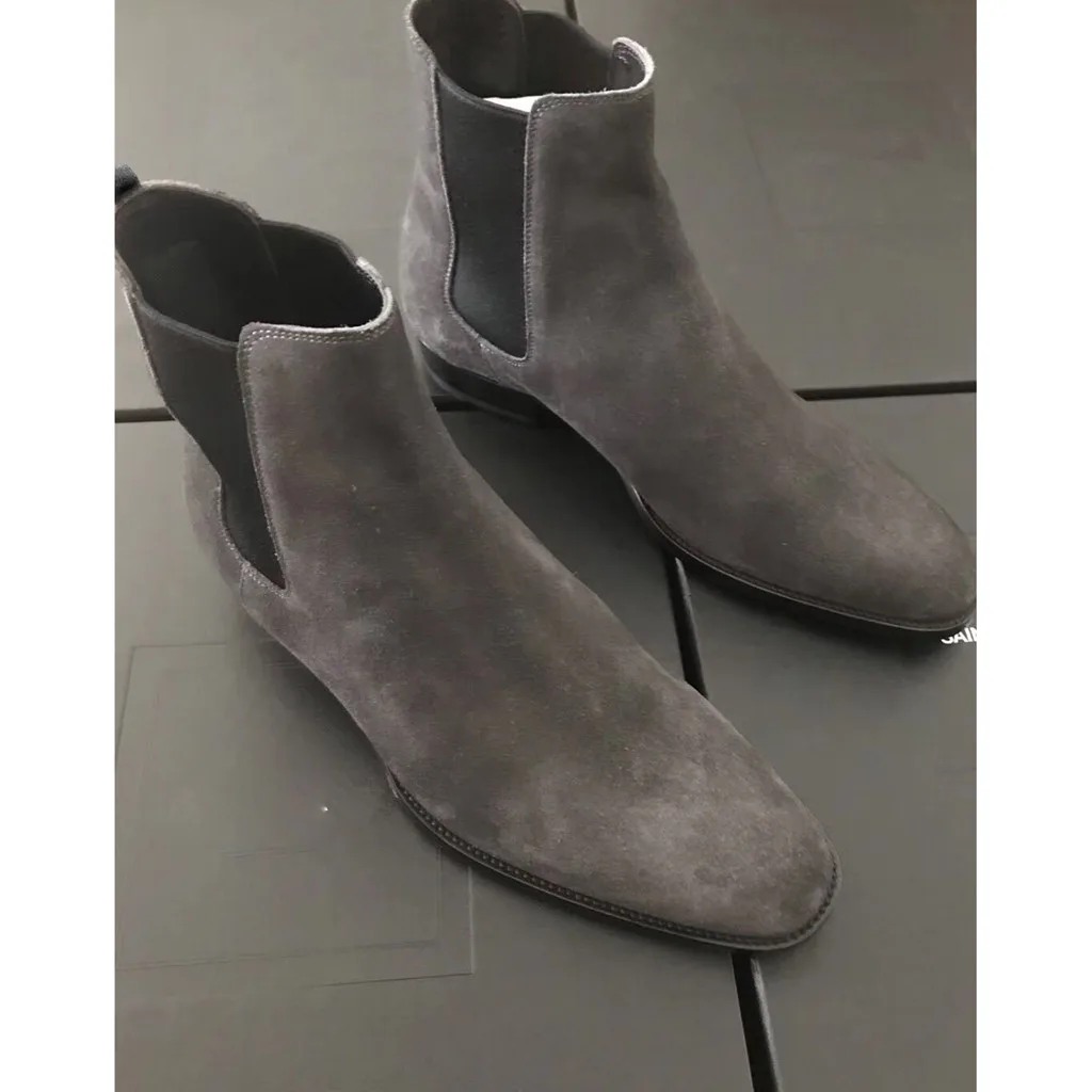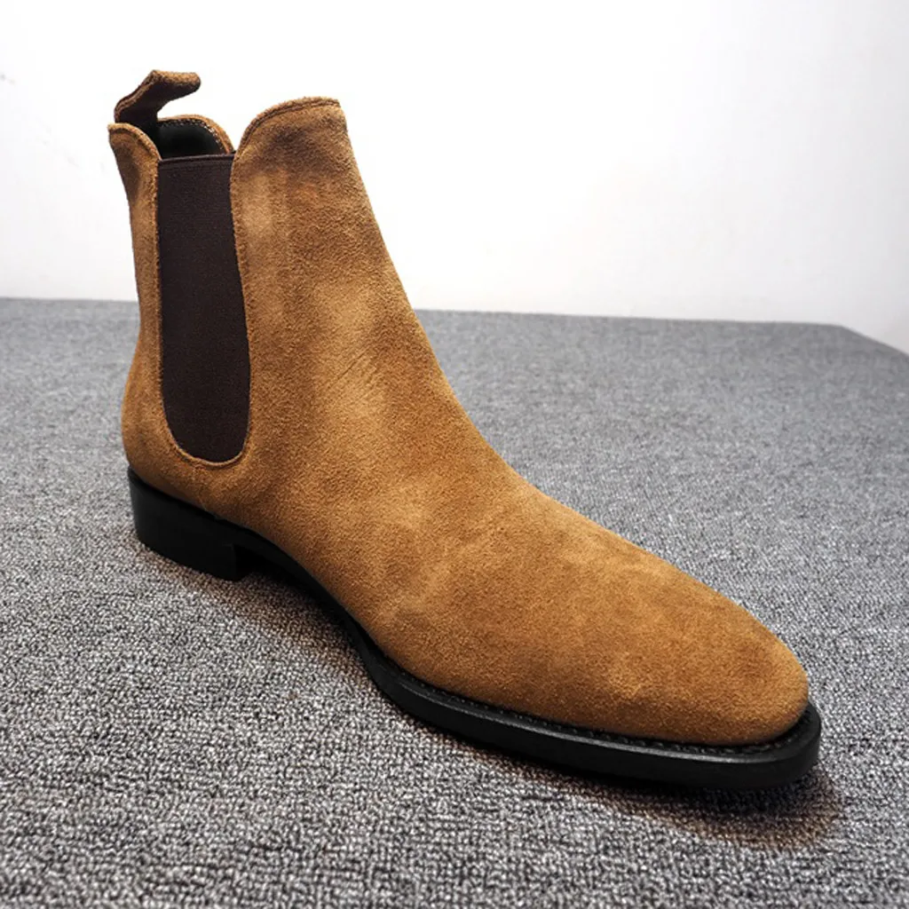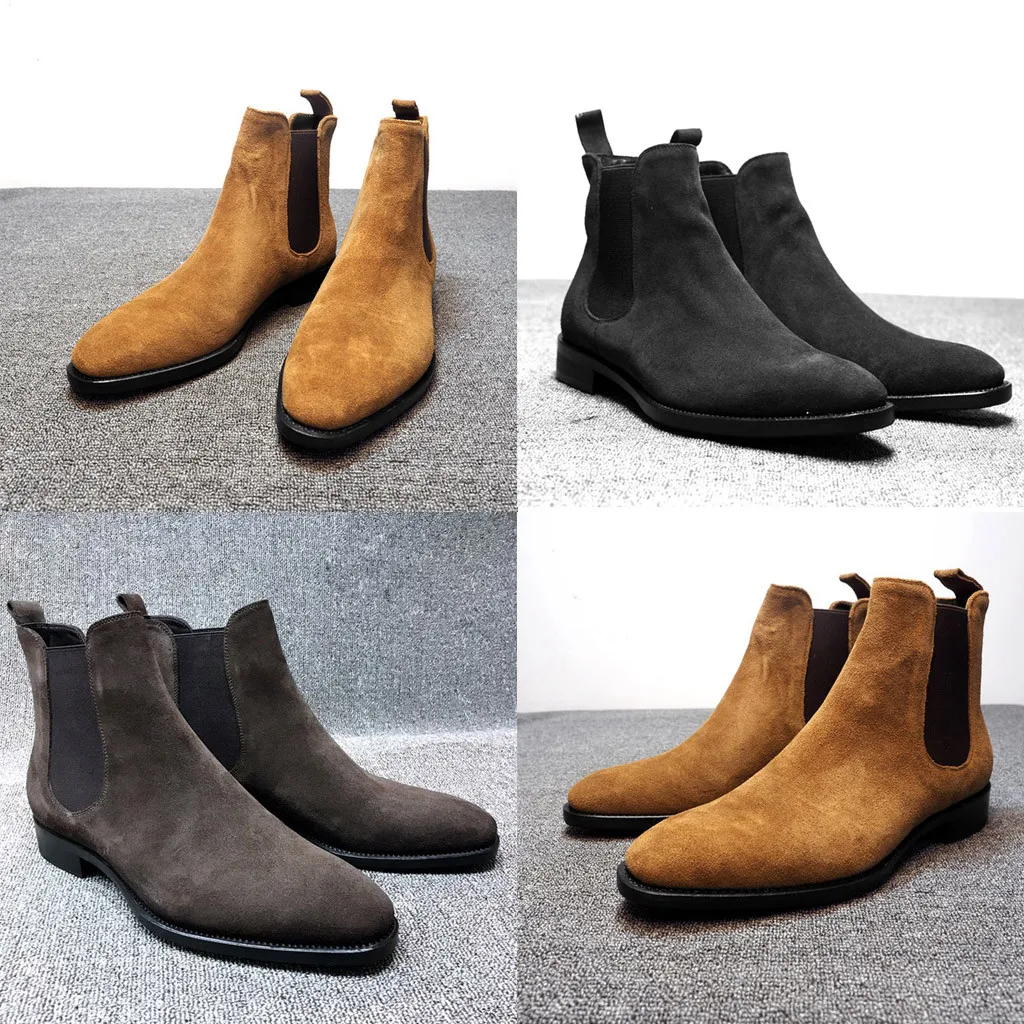 Модные мужские ботинки, мужские удобные ботинки для отдыха в стиле ретро с острым носком и высоким верхом, матовые замшевые ботинки, новинка 2020