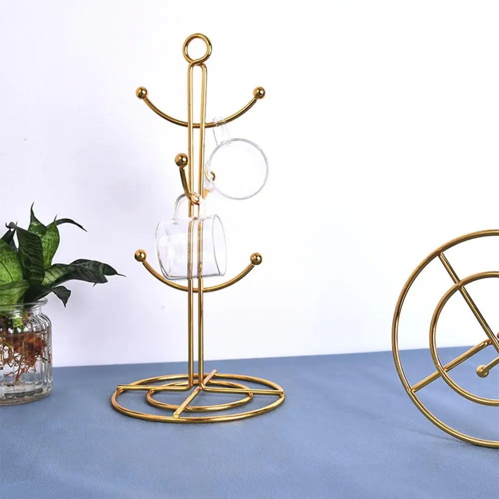 Держатель для кофейной чашки, Золотой держатель для кружки, стойка для хранения на обеденном столе, для кухни, подвесной держатель для чашки на дереве
