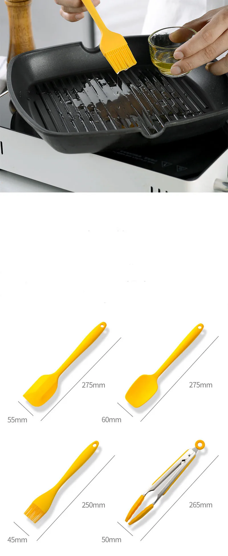 Желтая силиконовая посуда, термостойкий шпатель, масляная щетка, ве...