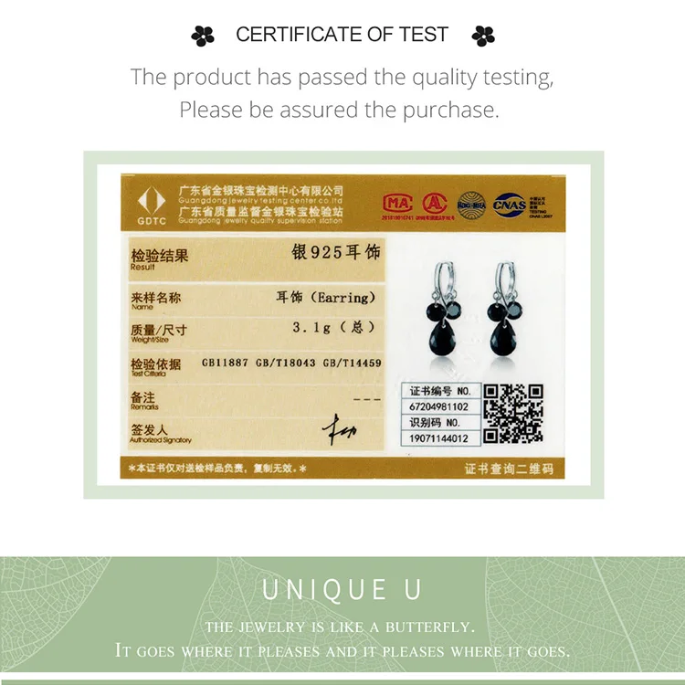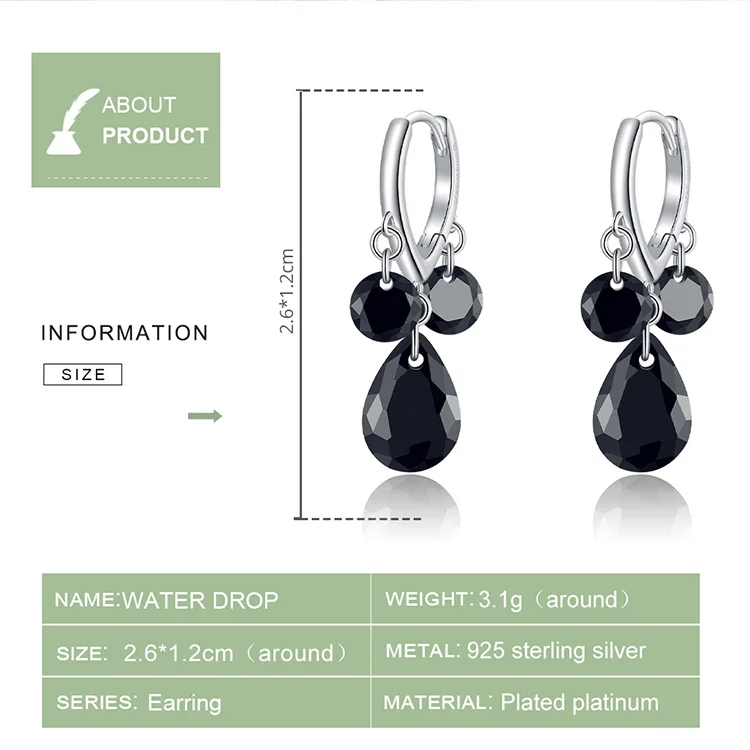 Серебряные серьги с черным камнем bamoer, 100% 925 пробы, серебряны...