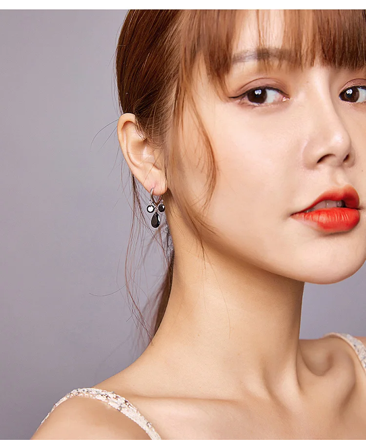 Bamoer Настоящее серебро 925 пробы черный CZ серьги-кольца с крести...