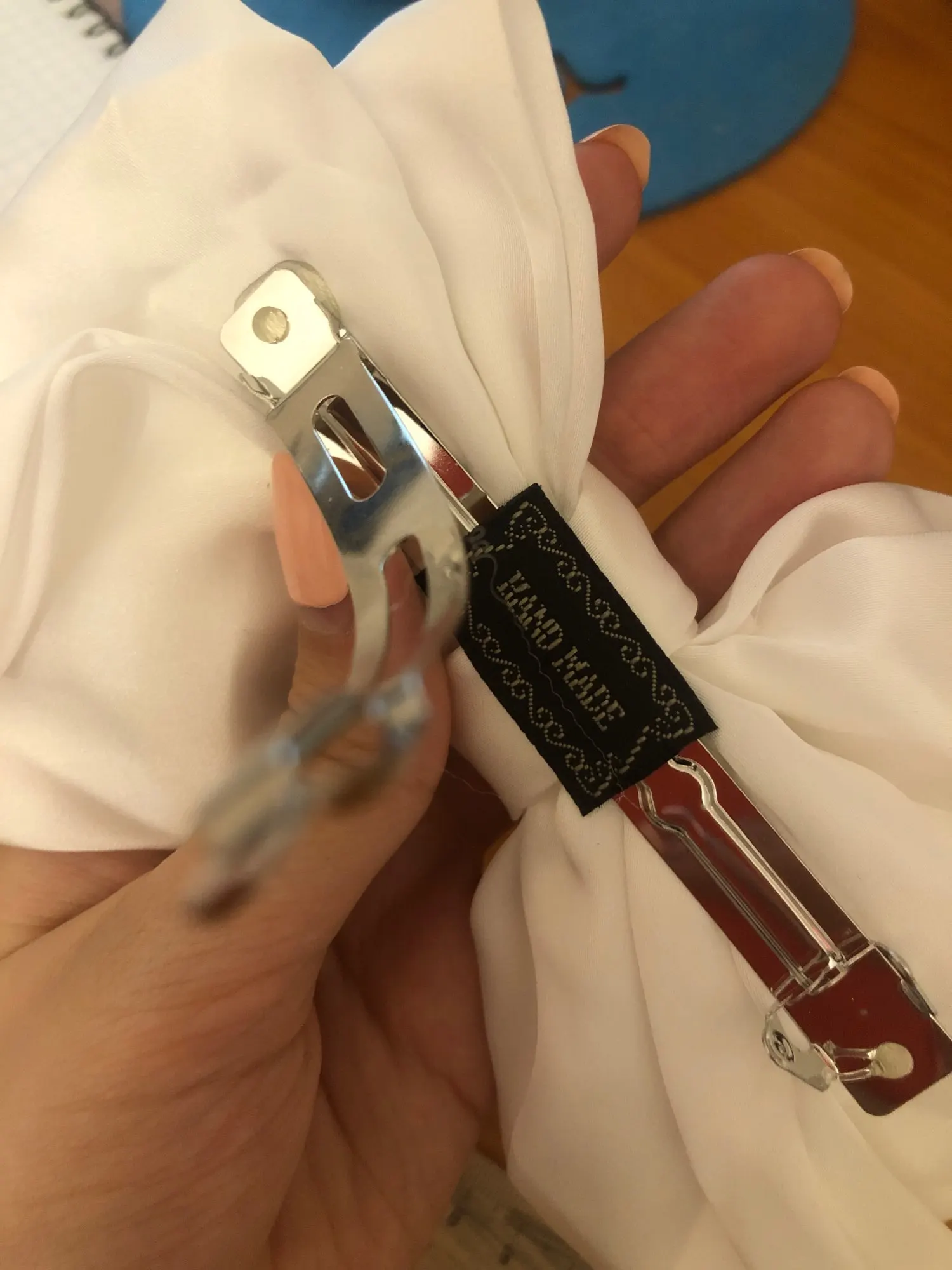 Цвет более яркий чем на фото. На деле совсем не пудровый розовый, а цвет поросячего восторга. Расстроена по этому поводу сильно. В остальном, качество хорошее, запаха нет, крепления и заколка аккуратные и хорошо функционируют