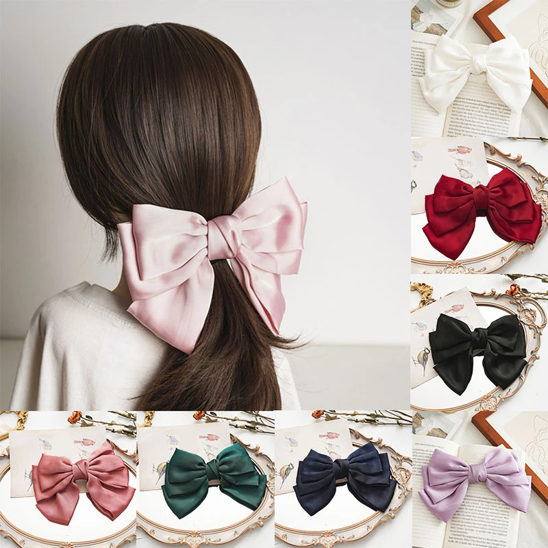Женские трехслойные заколки с большим бантом, элегантные атласные заколки для волос, заколки для конского хвоста, аксессуары для волос, украшение для волос