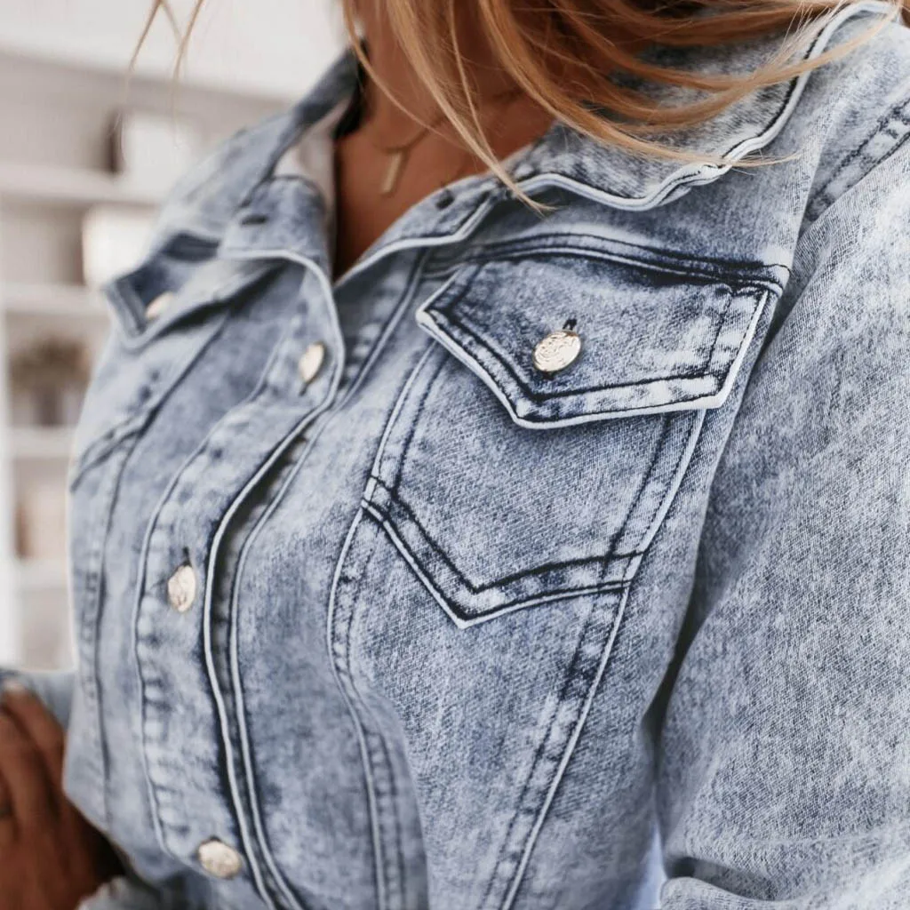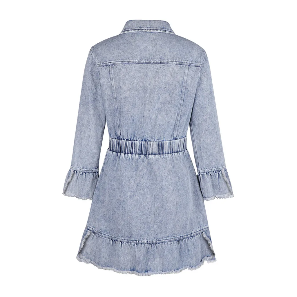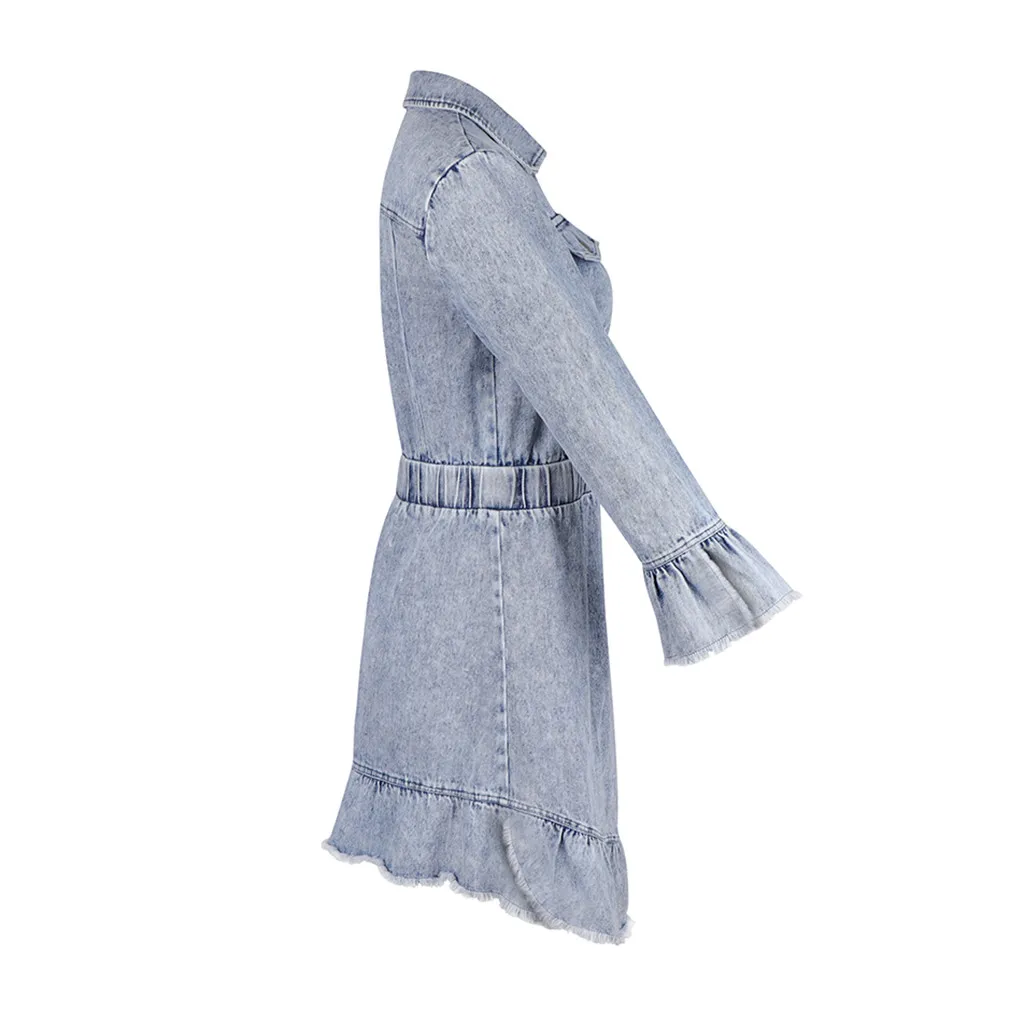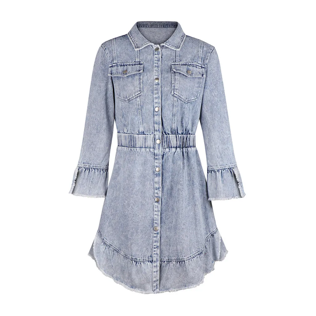 Женское джинсовое платье, с отложным воротником, с длинным рукавом