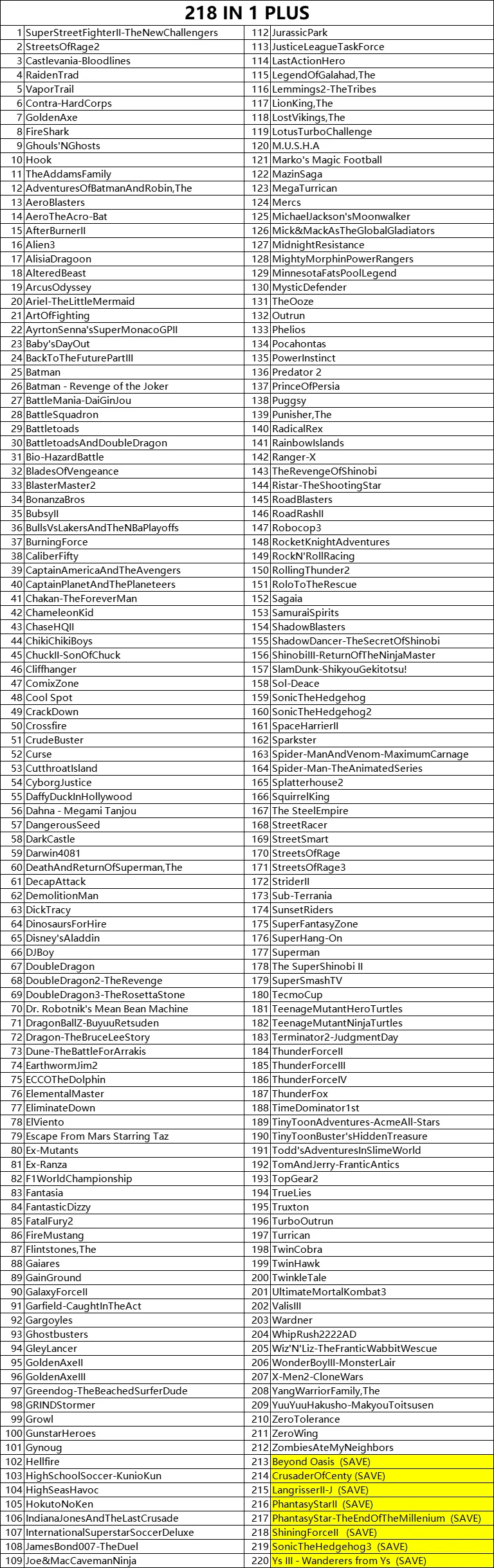 218 горячих игр в одном патроне для консолей Megadrive и Genesis