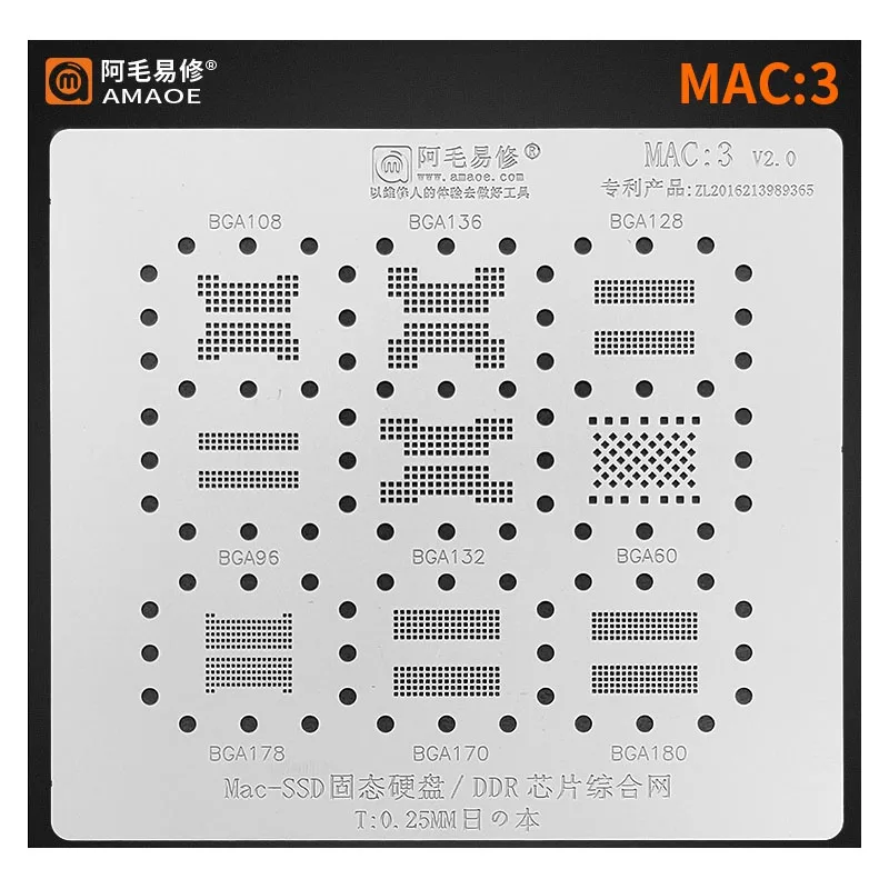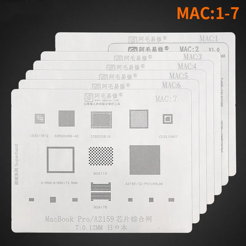 Трафарет для реболлинга BGA MAC 1-7 для чипов Macbook NAND Cpu A1707 A1707 2015 2016 2017