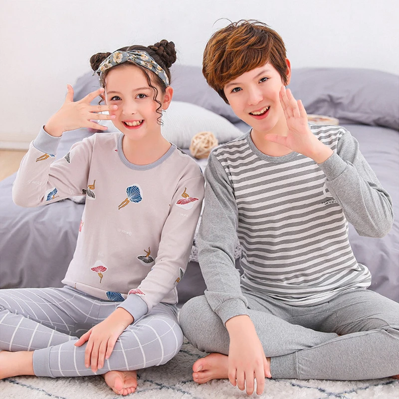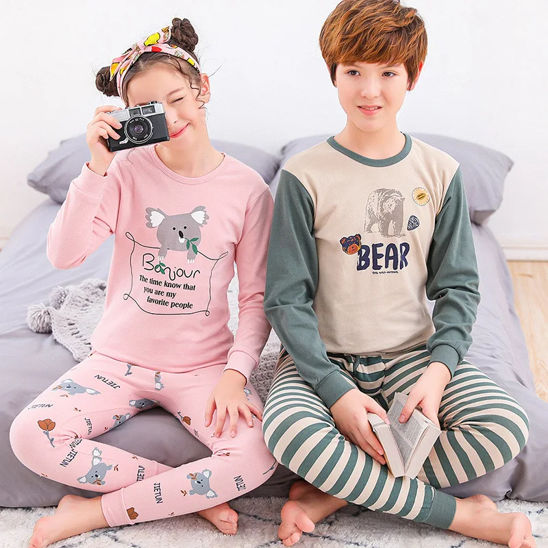 Новые пижамы для подростков; Осенний хлопковый детский пижамный ком...
