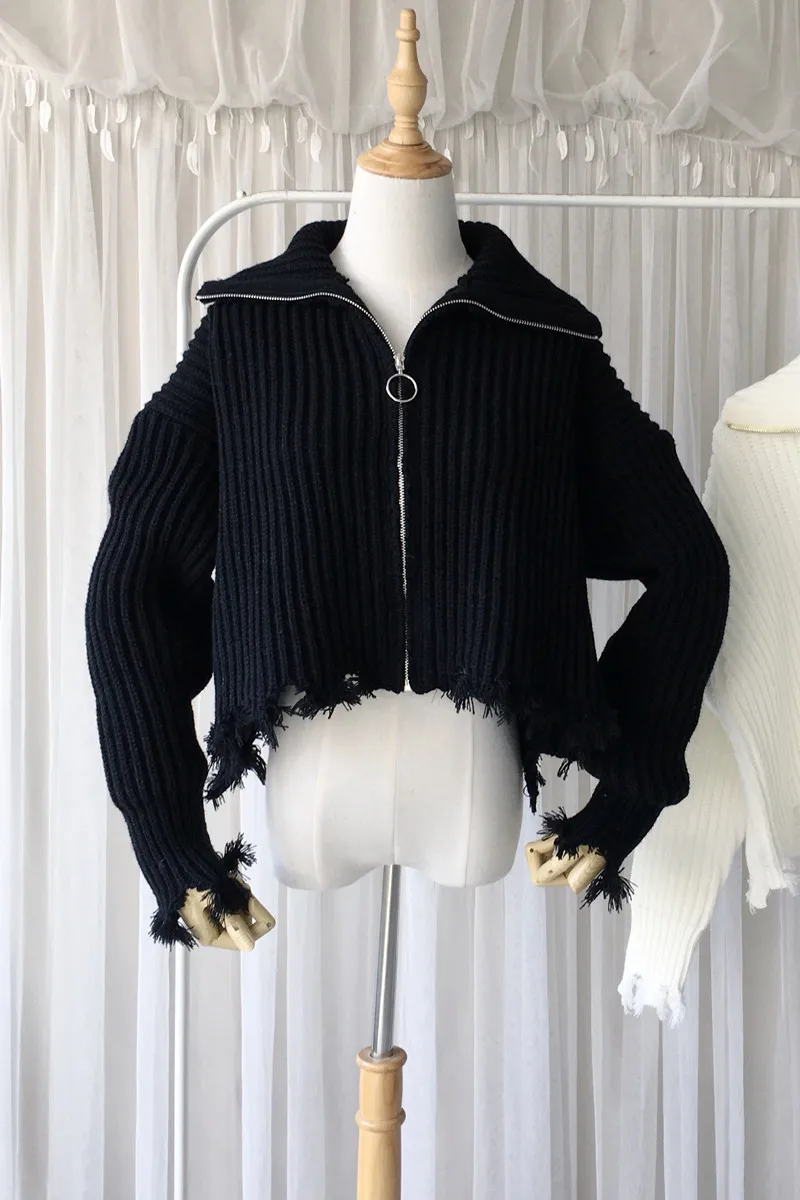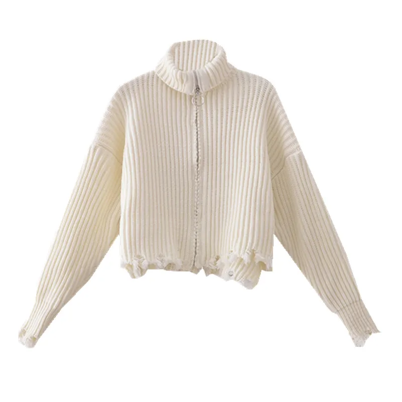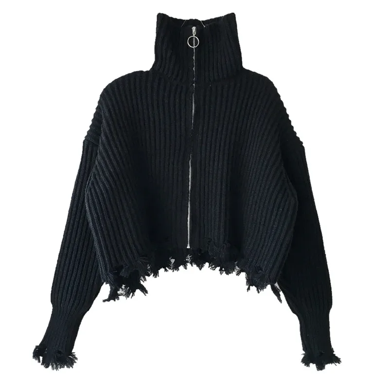 Асимметричный вязаный кардиган с кисточками, новинка на весну и осень, свободный женский свитер на молнии с высоким воротником