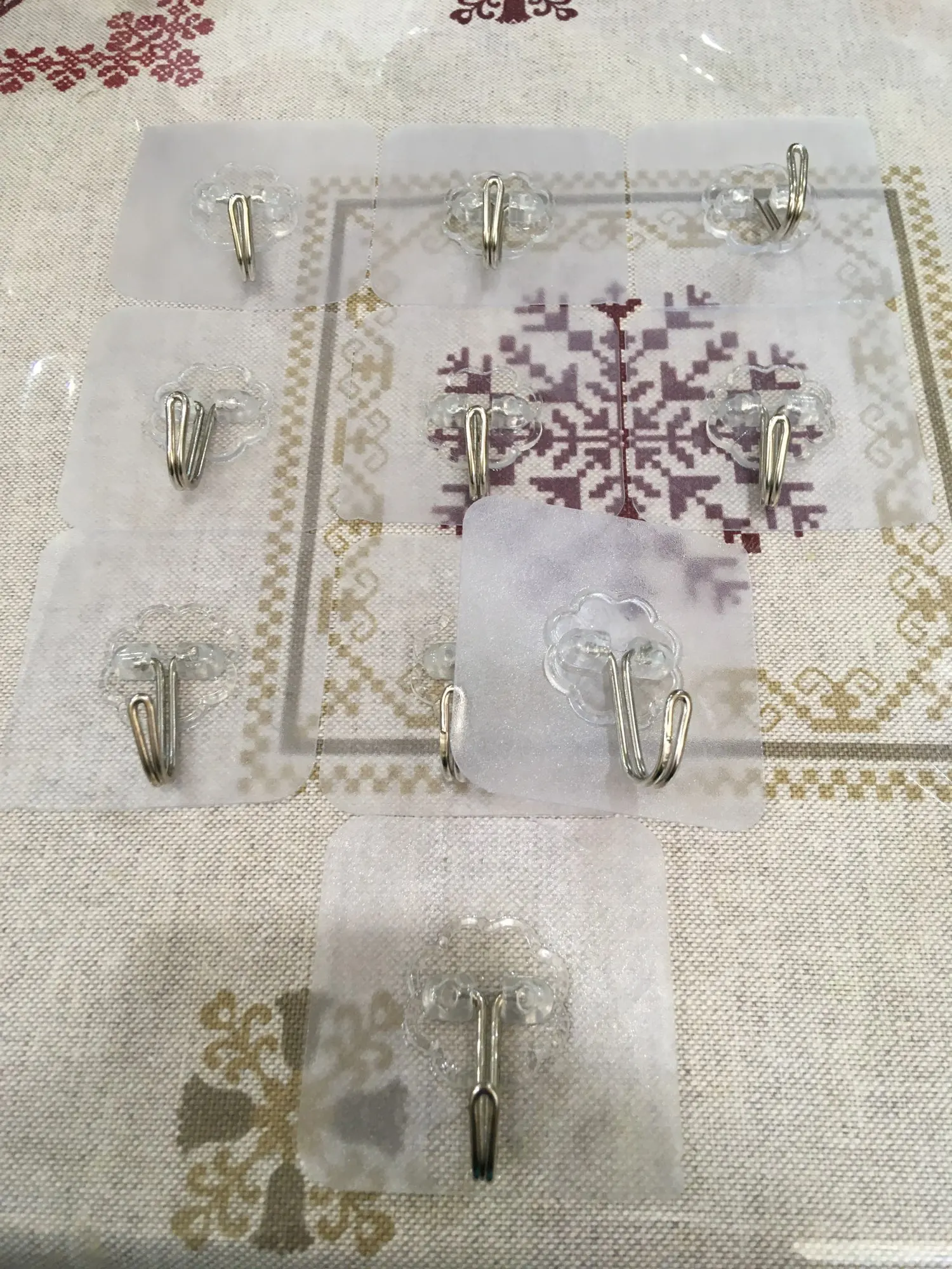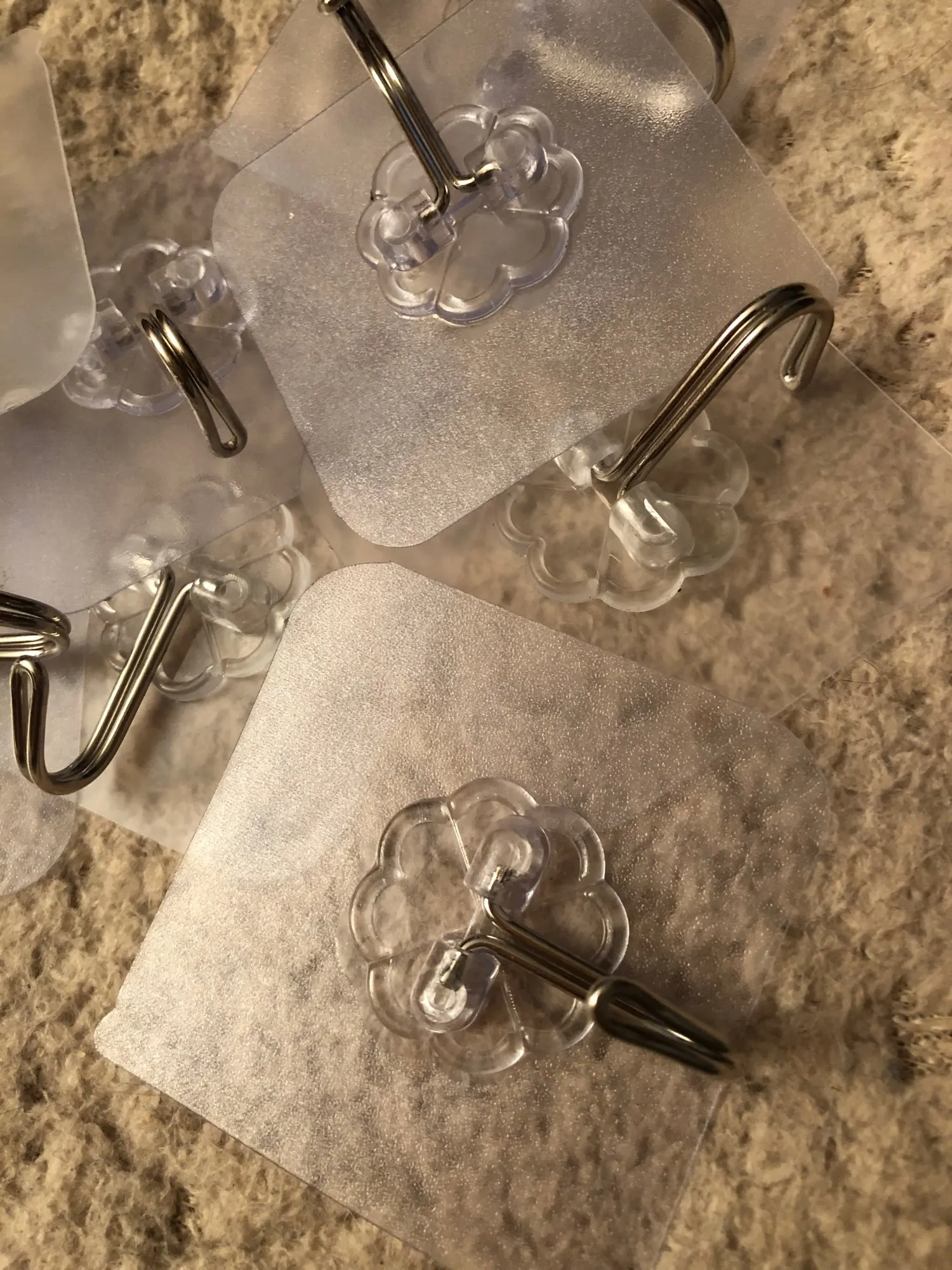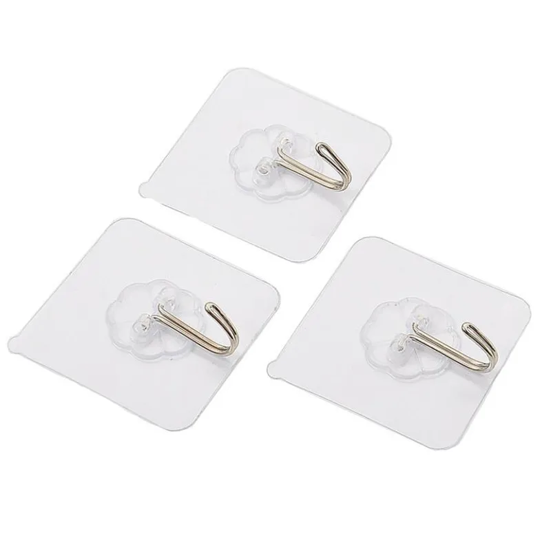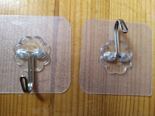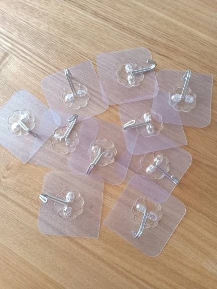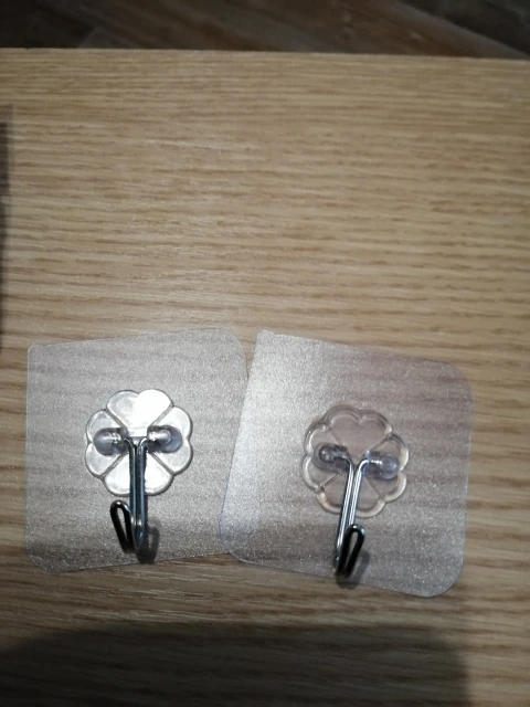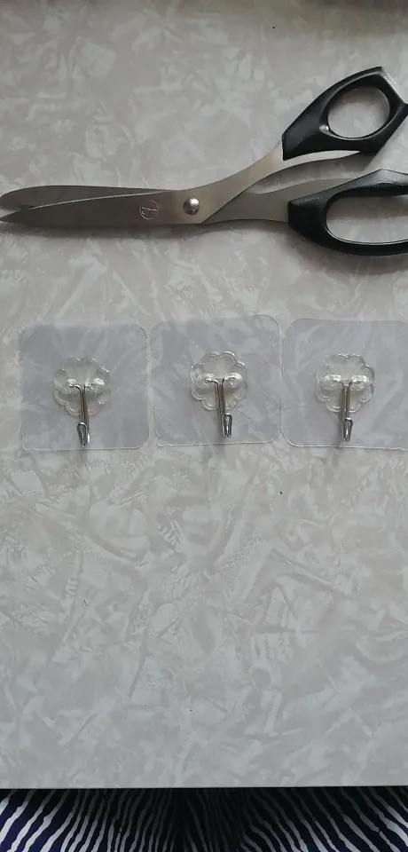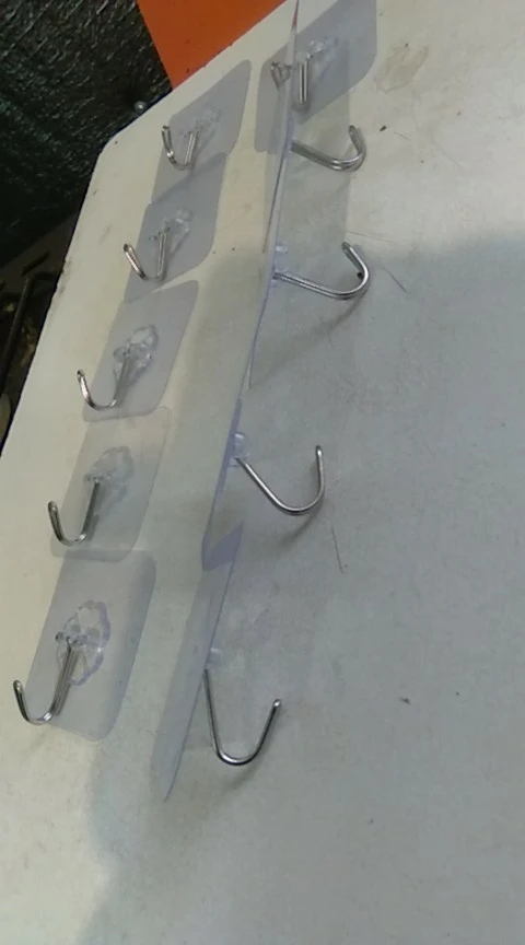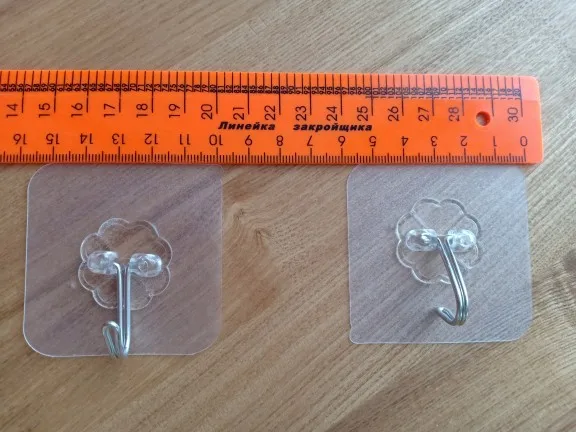 хорошие крючки, очень тонкое полупрозрачное основание, клится намертво. можно клеить к стене или к низу полки - сам крючок поворачивается, удобно подвешивать.