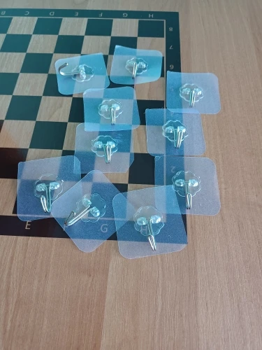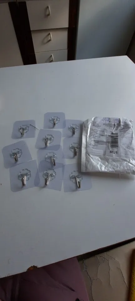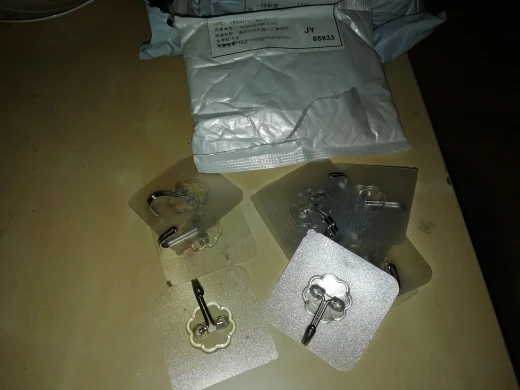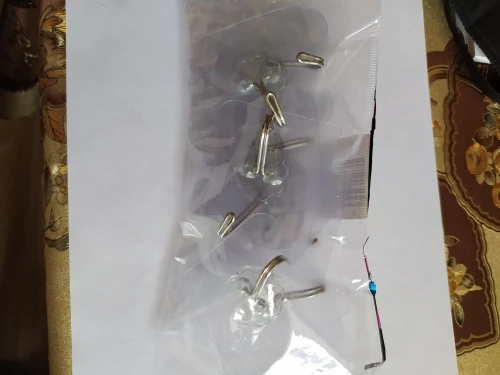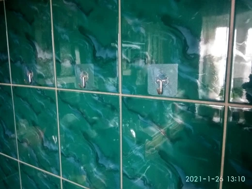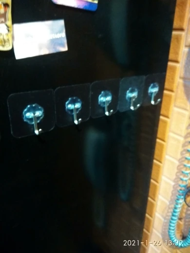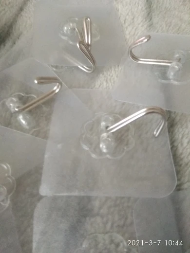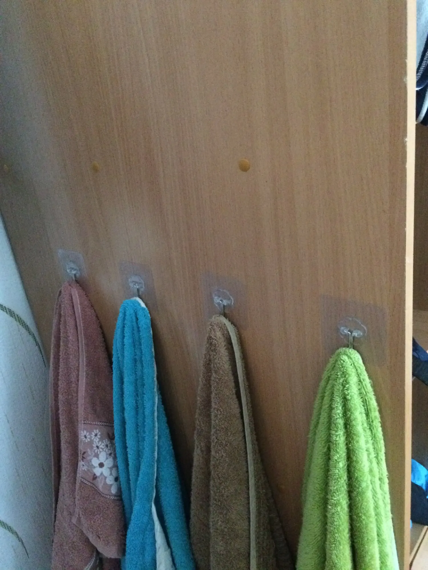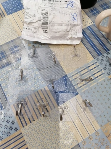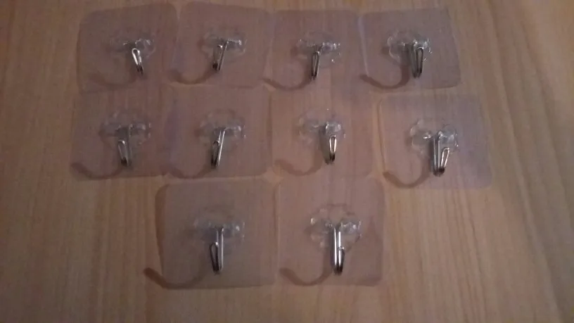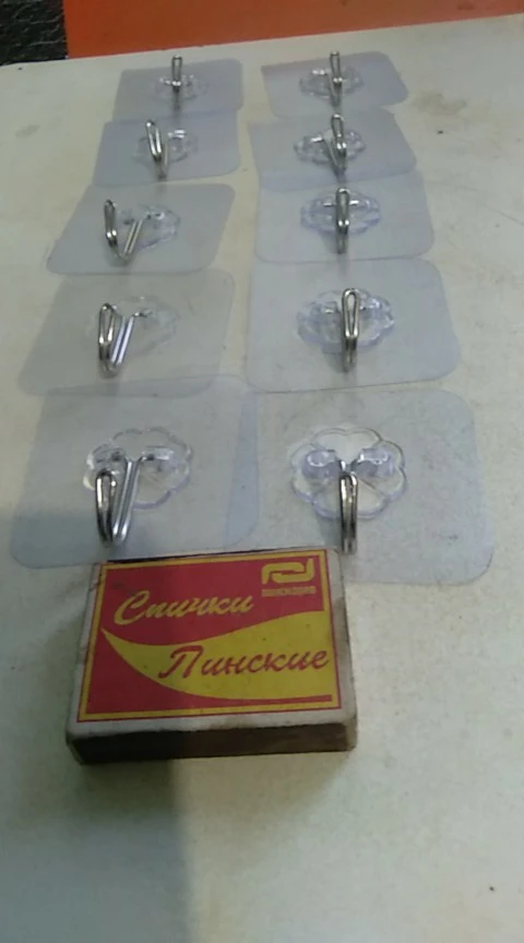 Доставка быстрая, за две недели. Некоторые крючки не по центру, ну это не проблема. Прикрепила в душевой, держится пока крепко. На кухне на шкафчики прилепила, предварительно обезжирев поверхность. Кухонные принадлежности висят, не отваливаются. Посмотрим как на долго хватит)